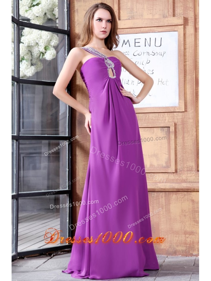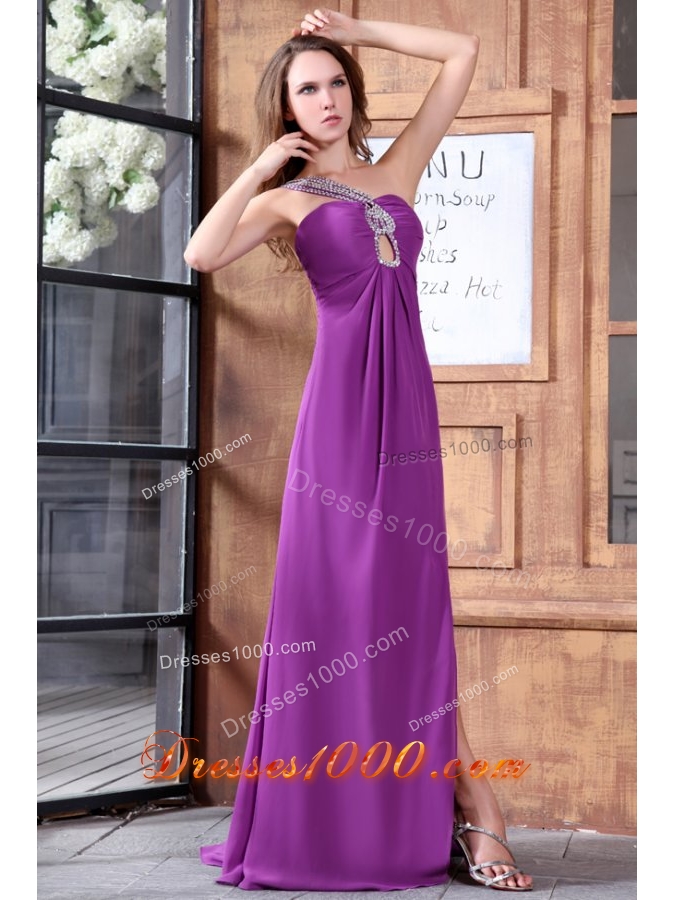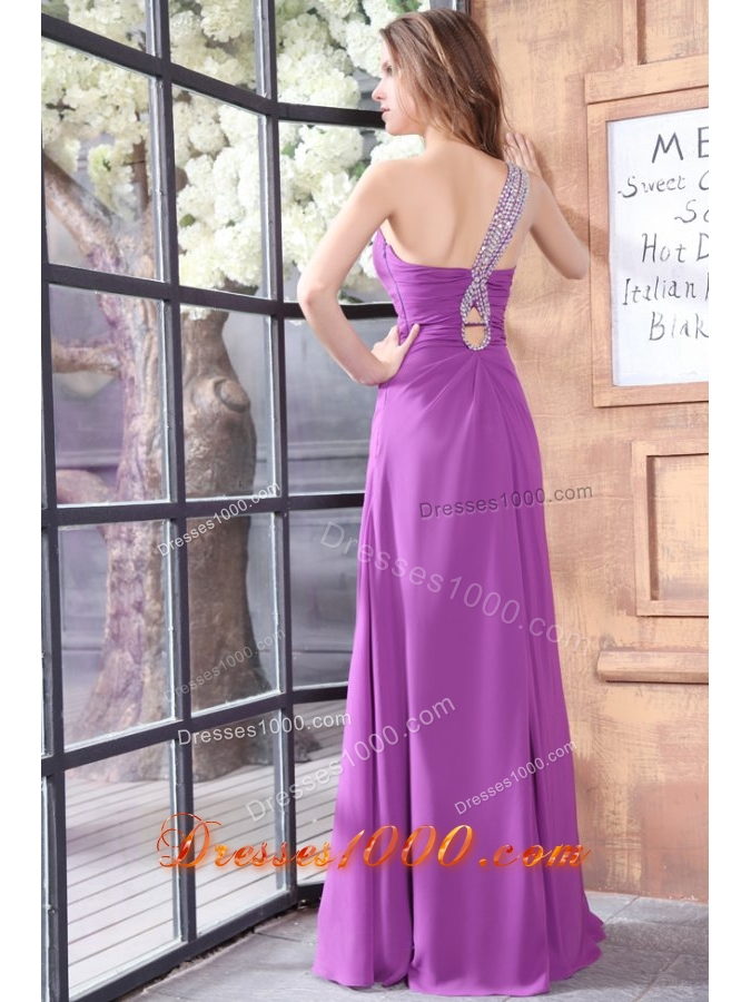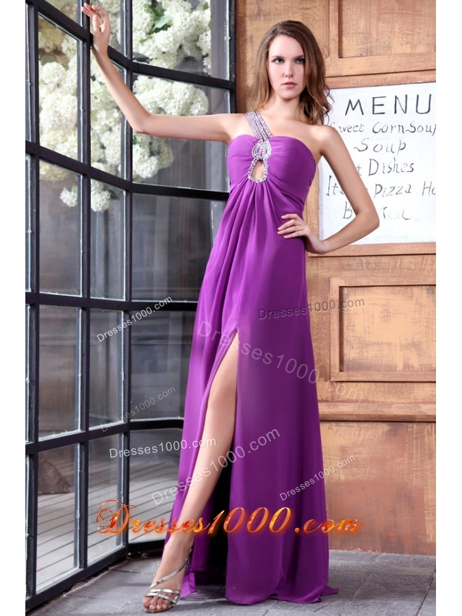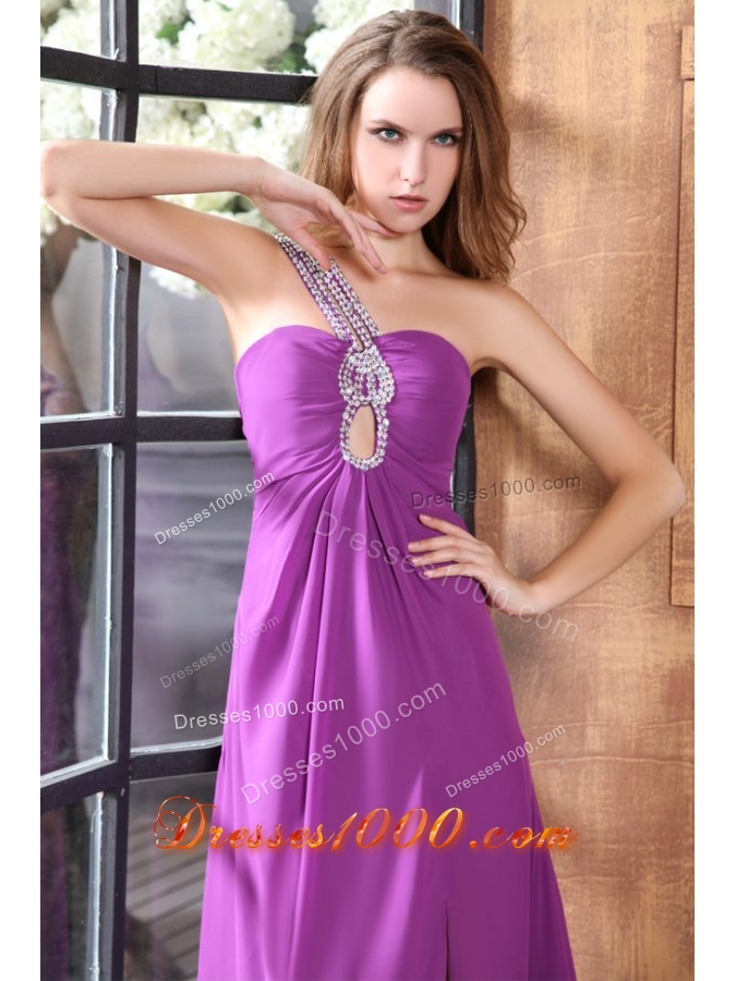 Light Purple Beading Decorate One Shoulder Prom Dress with Slit