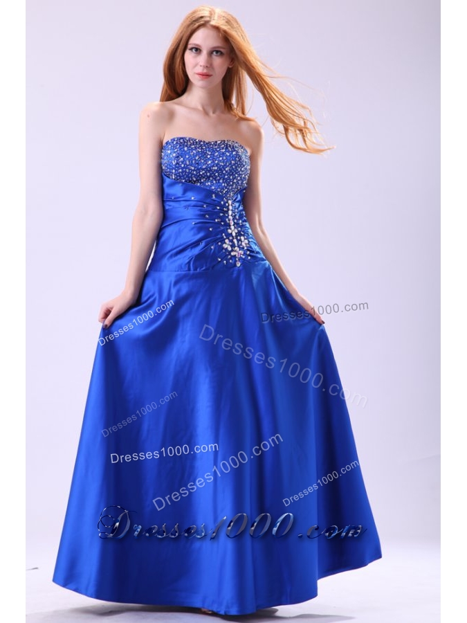 Magic Royal Blue Strapless Prom Dress with Beading and Ruches