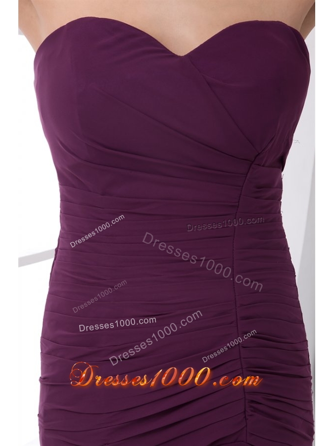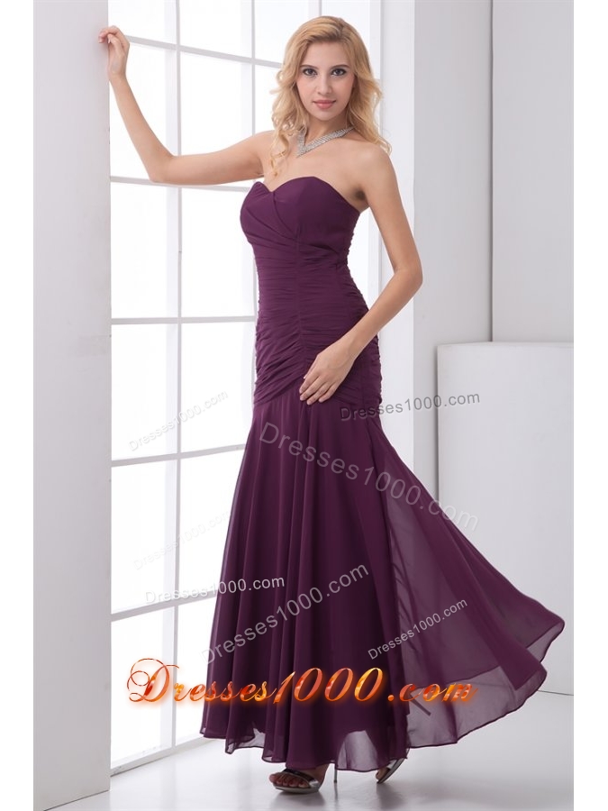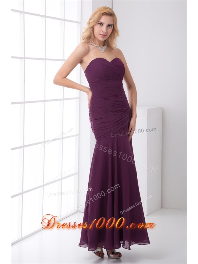 Grape Sweetheart Mermaid Ankle Length Prom Dress with Ruches