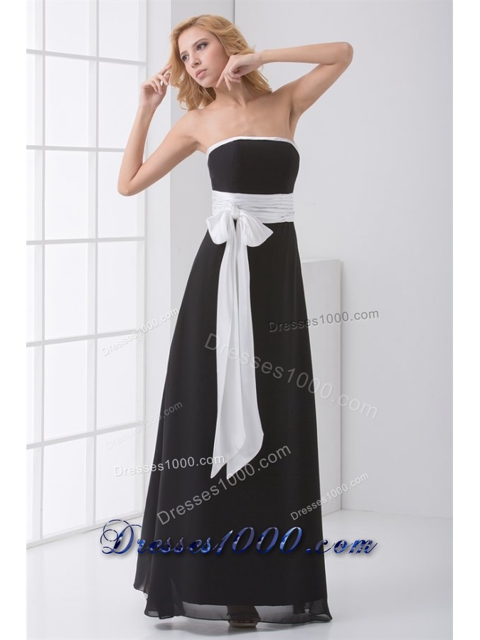 Strapless White and Black Prom Bridesmaid Dress with Bowknot