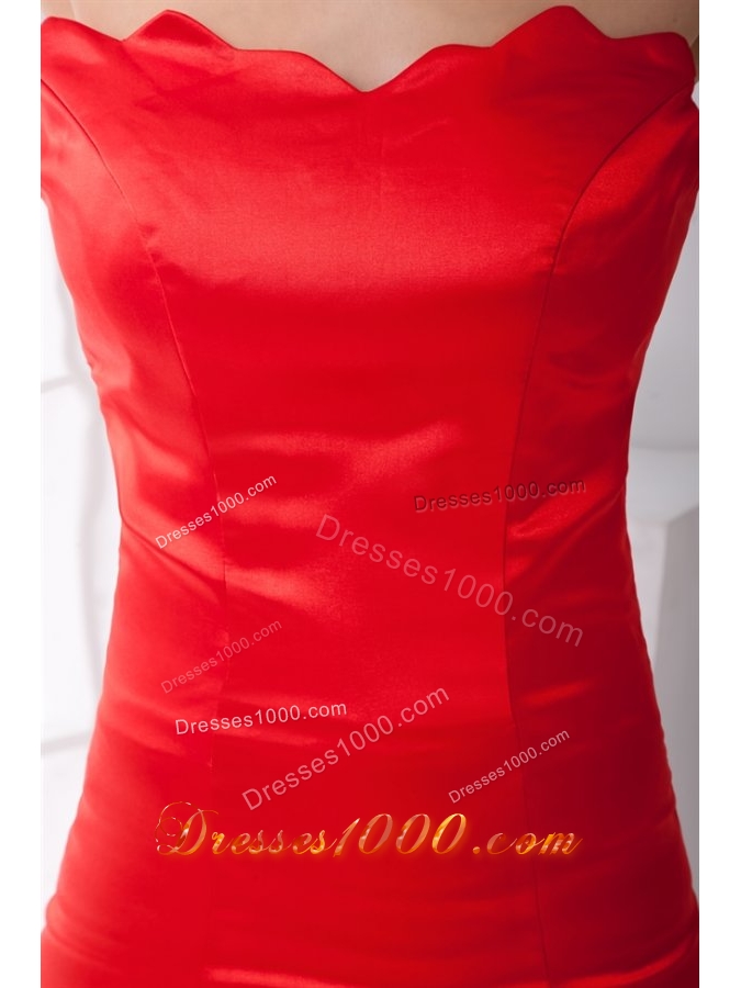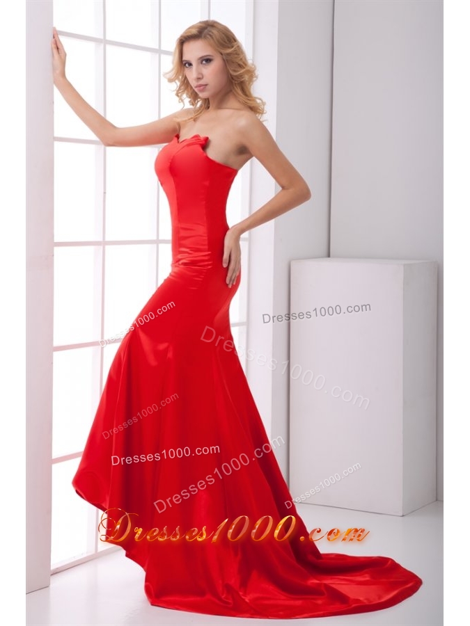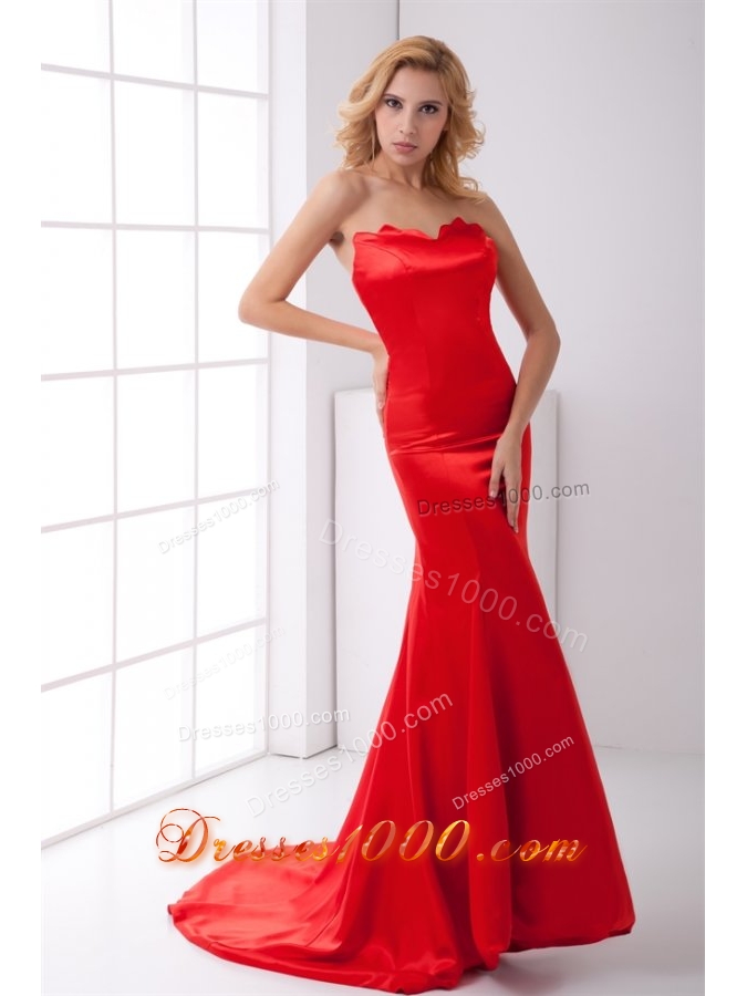 Bright Red Sweetheart Mermaid Prom Evening Dress with Brush Train