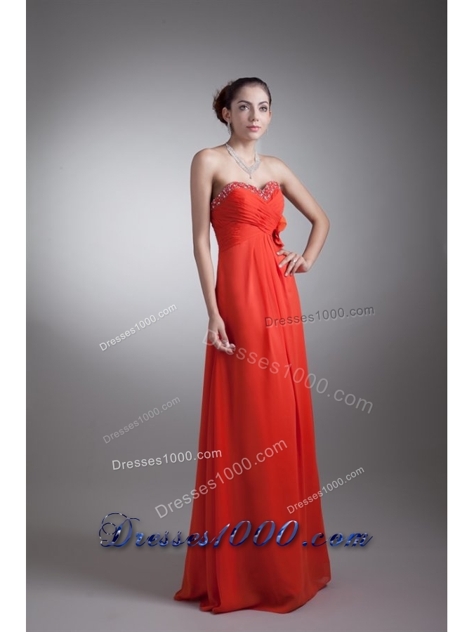 Bright Red Sweetheart Chiffon Prom Dress with Beading and Flower
