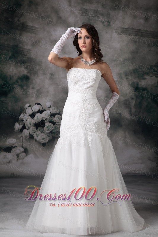 Mermaid Brush Lace Wedding Dress Strapless Tulle