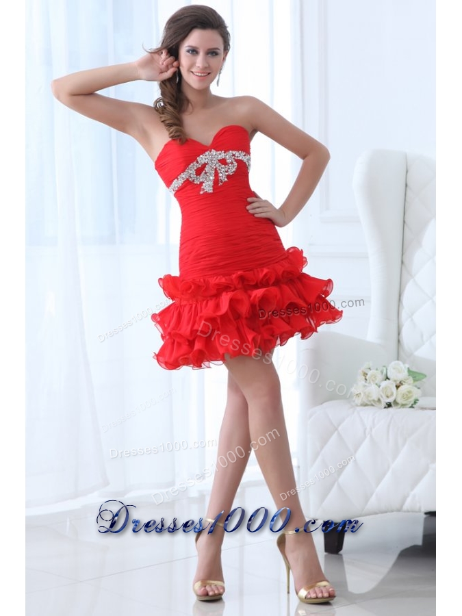 Short Sweetheart Prom Mini Dress with Ruching Bodice and Ruffles