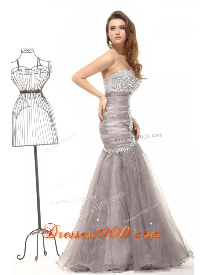 Mermaid Grey Prom Celebrity Dress with Beading and Ruches