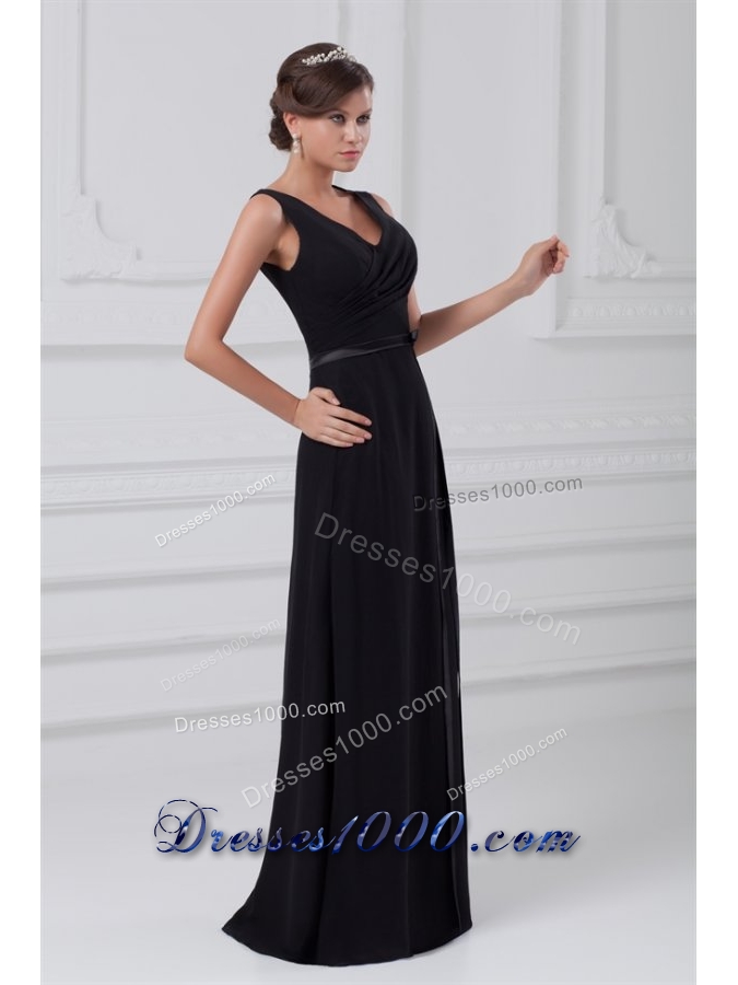 Sexy V Neck Black Prom Mother Dress with Zipper Up Back