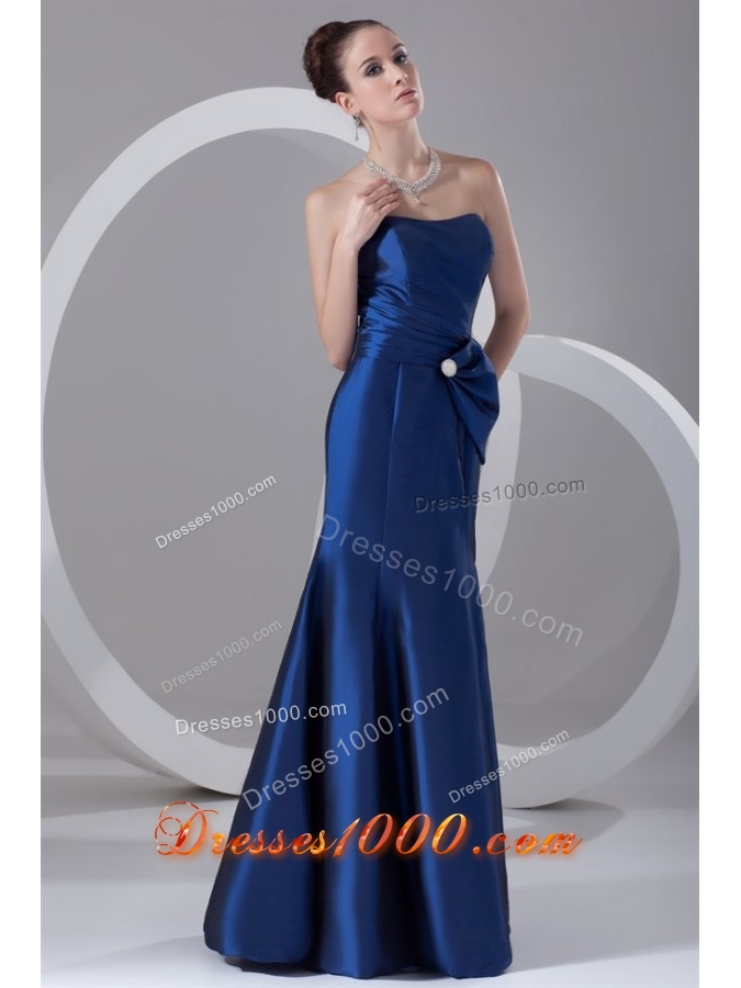 Simple Dark Blue Strapless Mermaid Mother Dress with Bowknot
