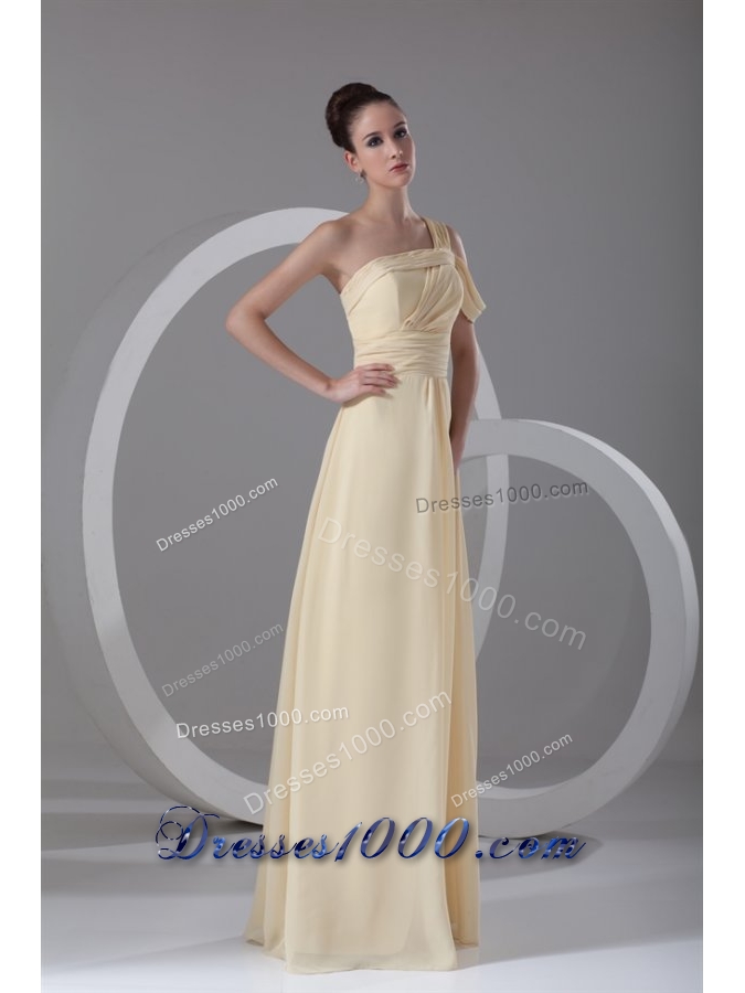 Light Yellow One Shoulder Chiffon Prom Dress with Beading