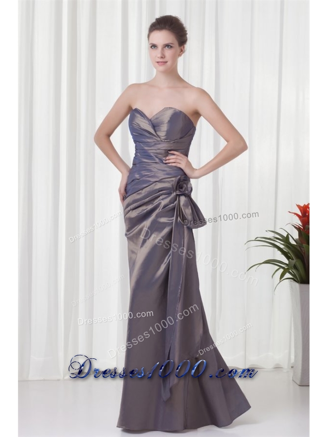 Formal Sweetheart Grey Prom Dress with Ruches and Flowers