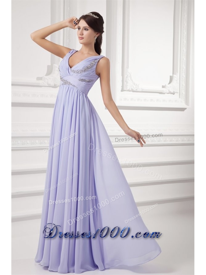 Elegant Lavender Beading Prom Dress with Ruches and Beading