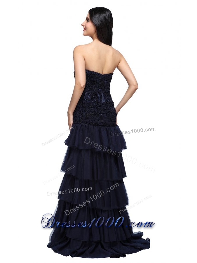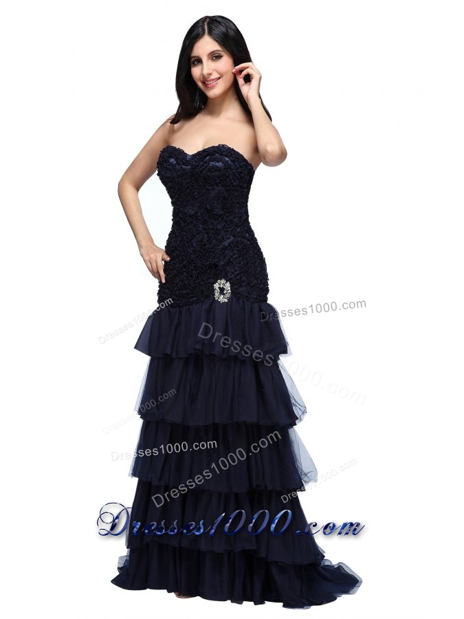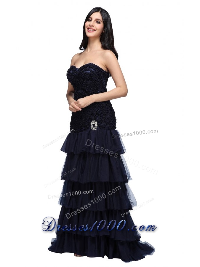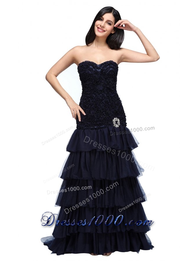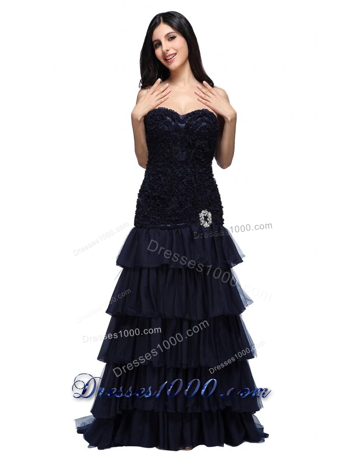 Beautiful Navy Blue Sweetheart Prom Dress with Beading and Layers