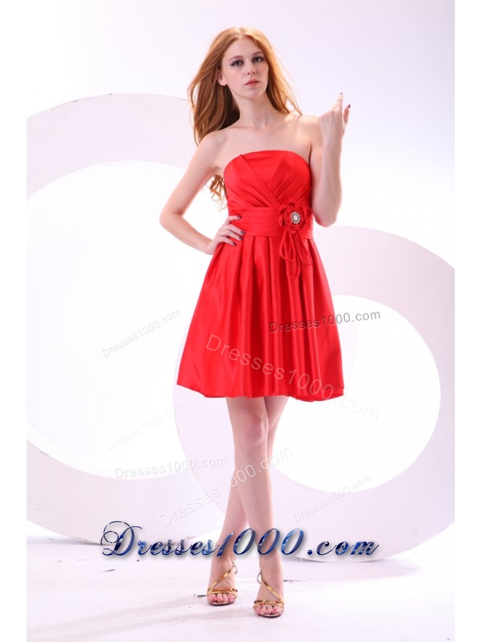 Simple Strapless Mini-length Red Prom Dress with Ruching