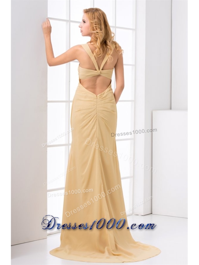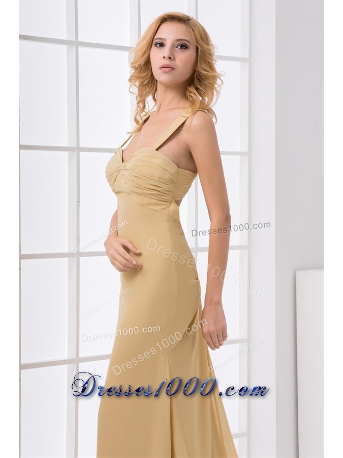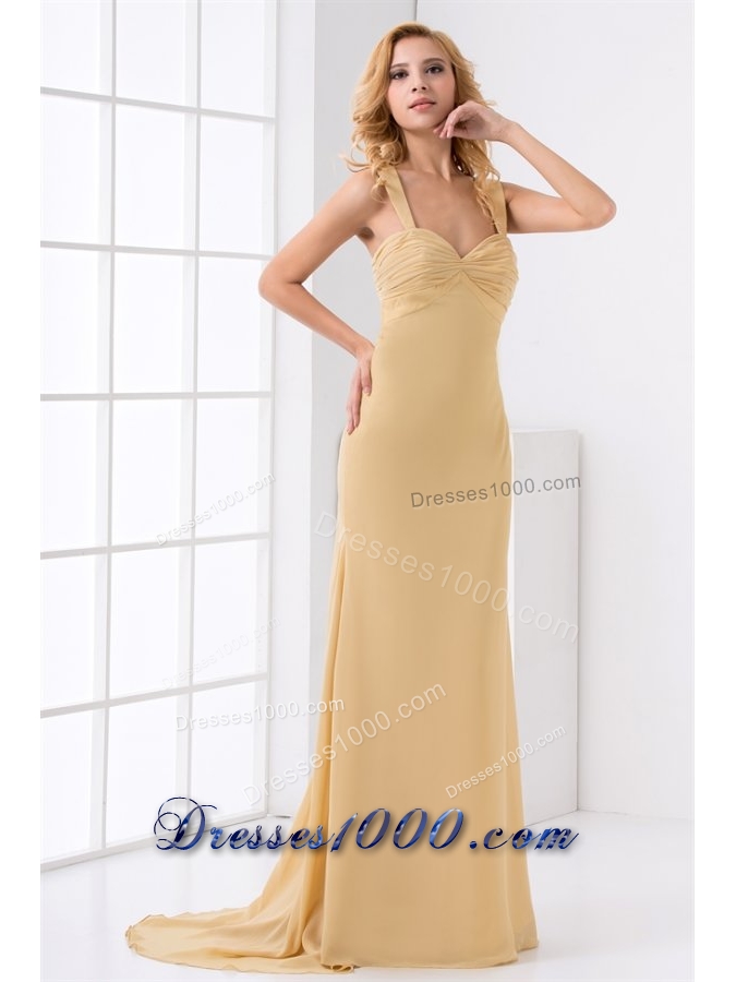 Pretty Champagne Chiffon Formal Evening Dress With Brush Train