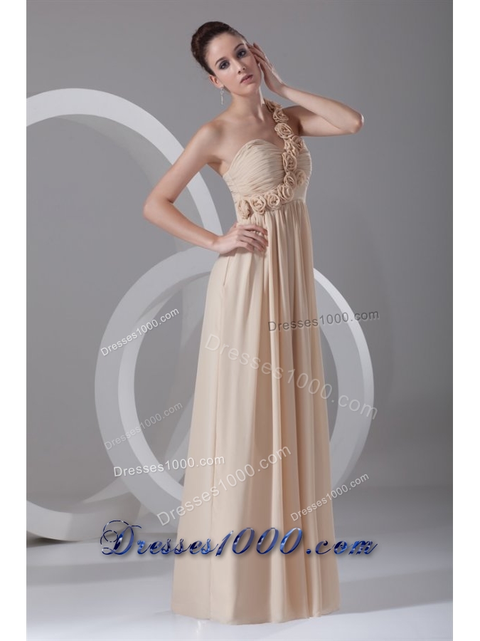 Champagne One Shoulder Chiffon Prom Dress with Hand Flowers
