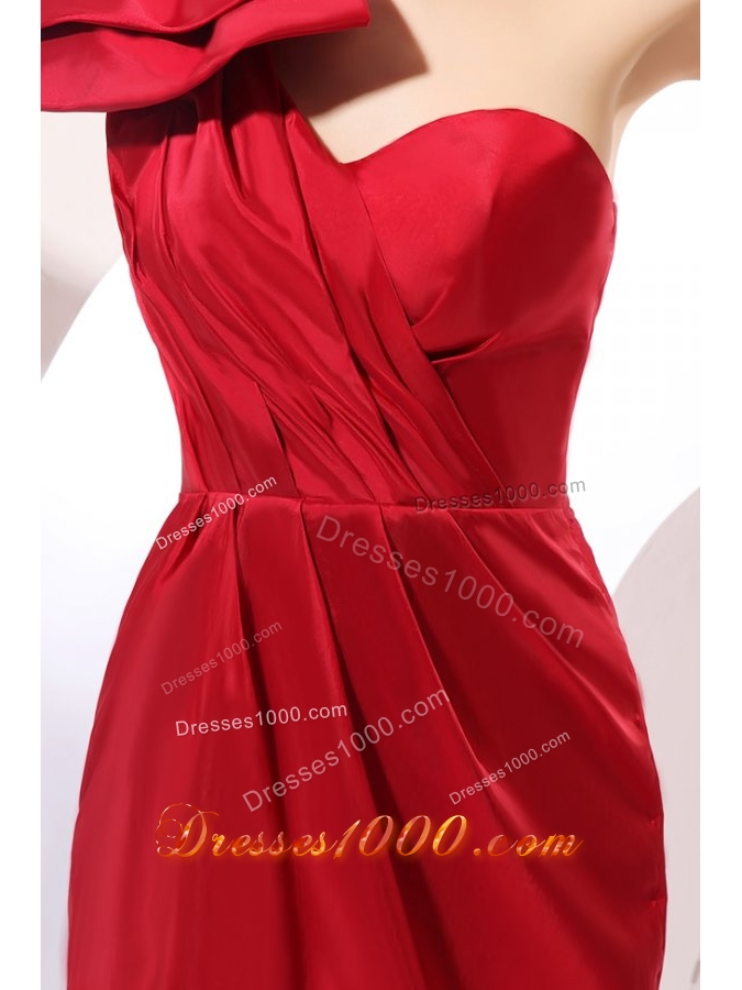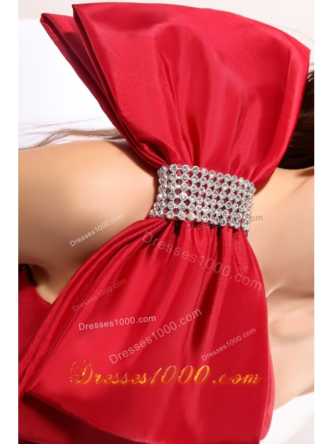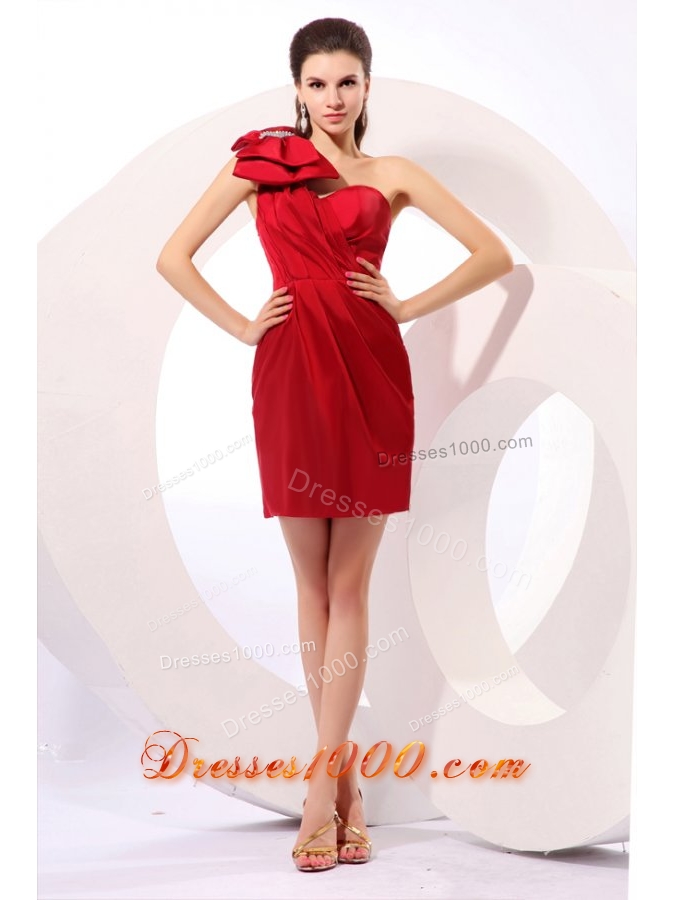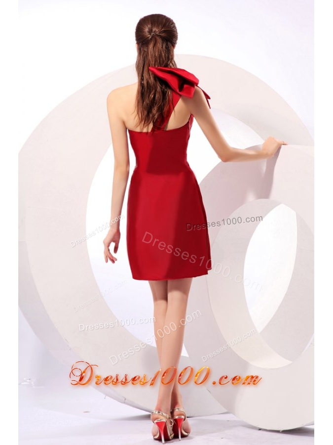 Lovely One Shoulder Mini-length Bowknot Column Red Prom Dress