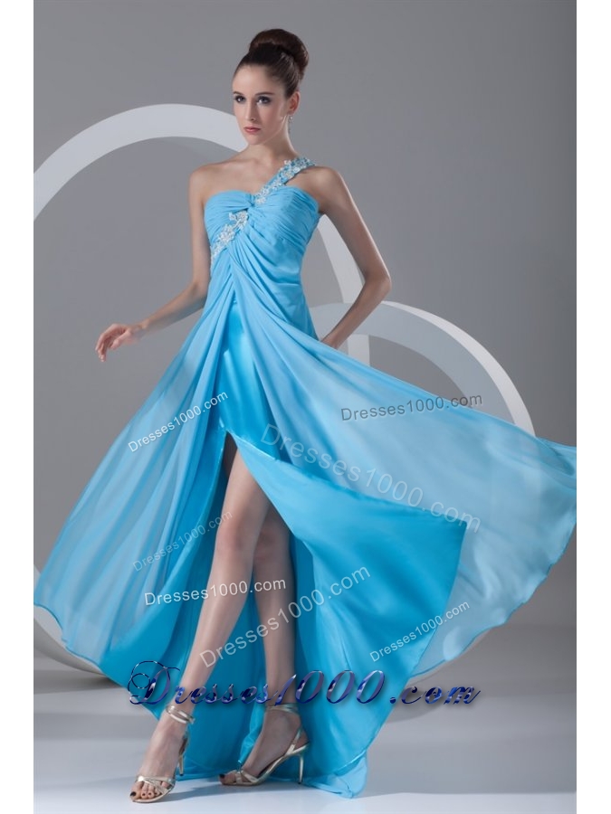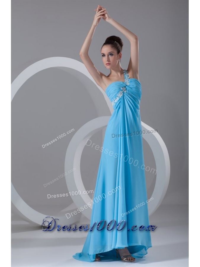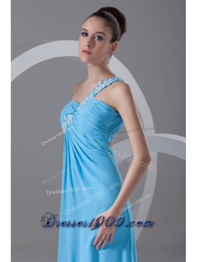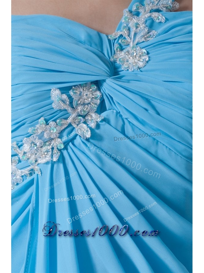 Chiffon Aqua Blue One Shoulder With Appliques Prom Dress