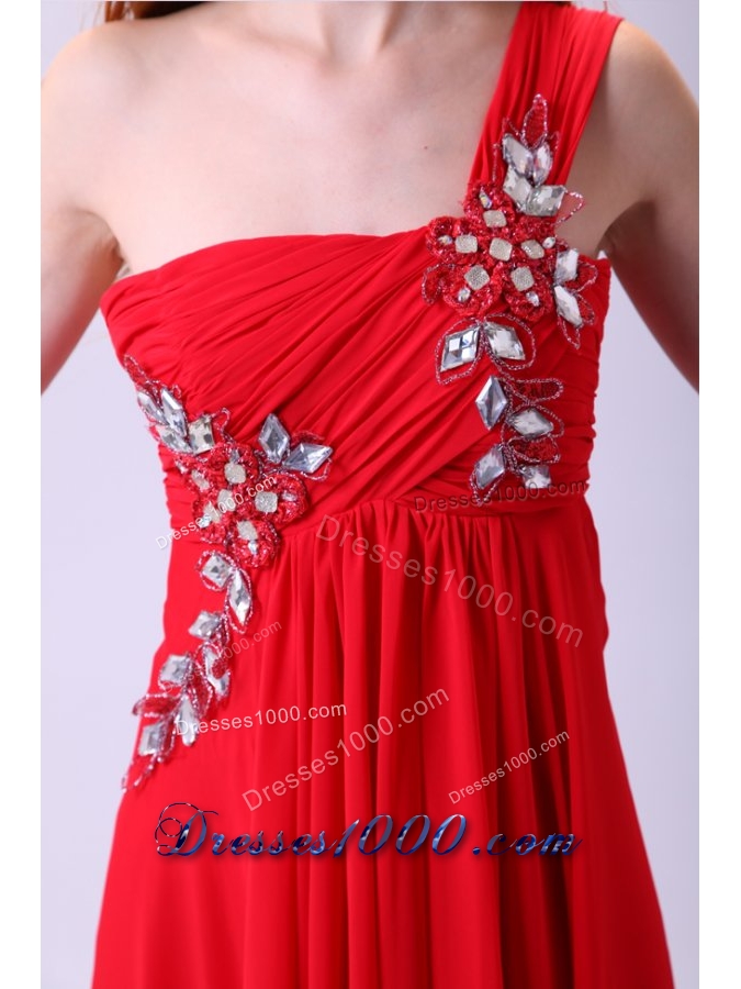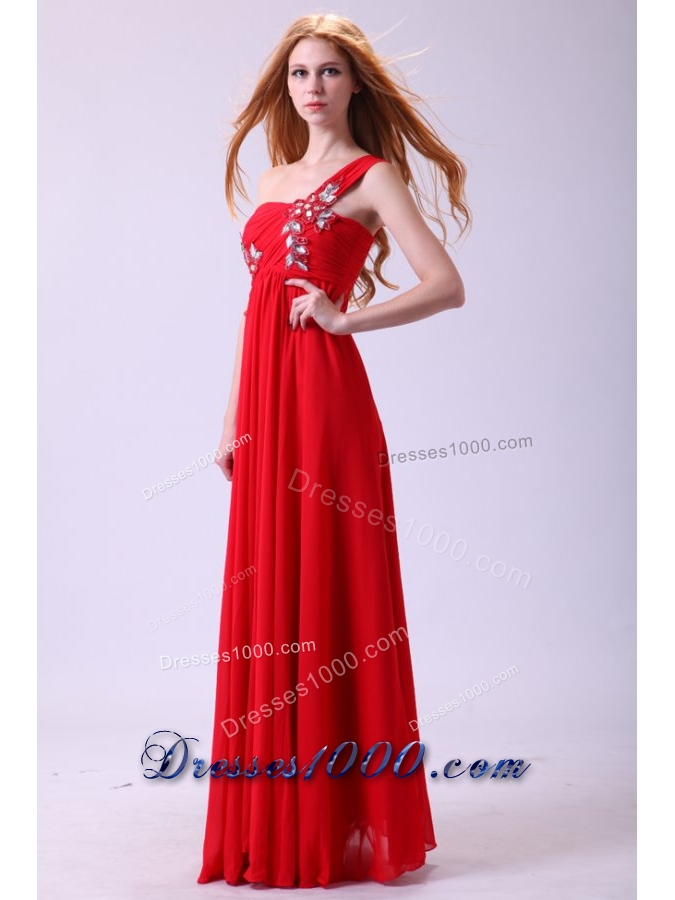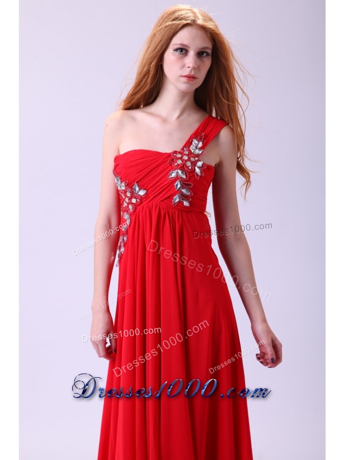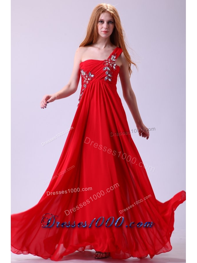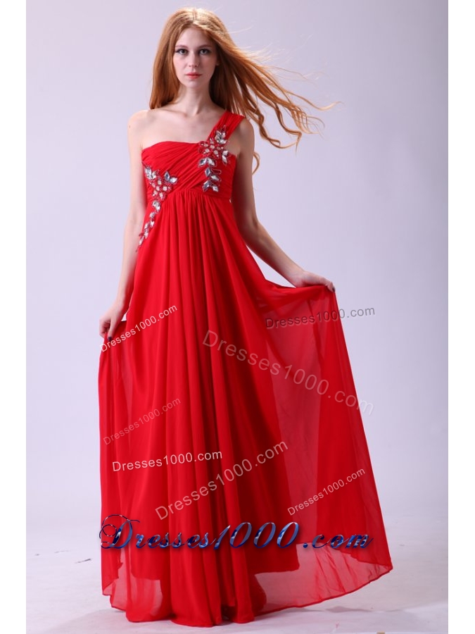 Empire One Shoulder Chiffon Red Prom Dress With Beading