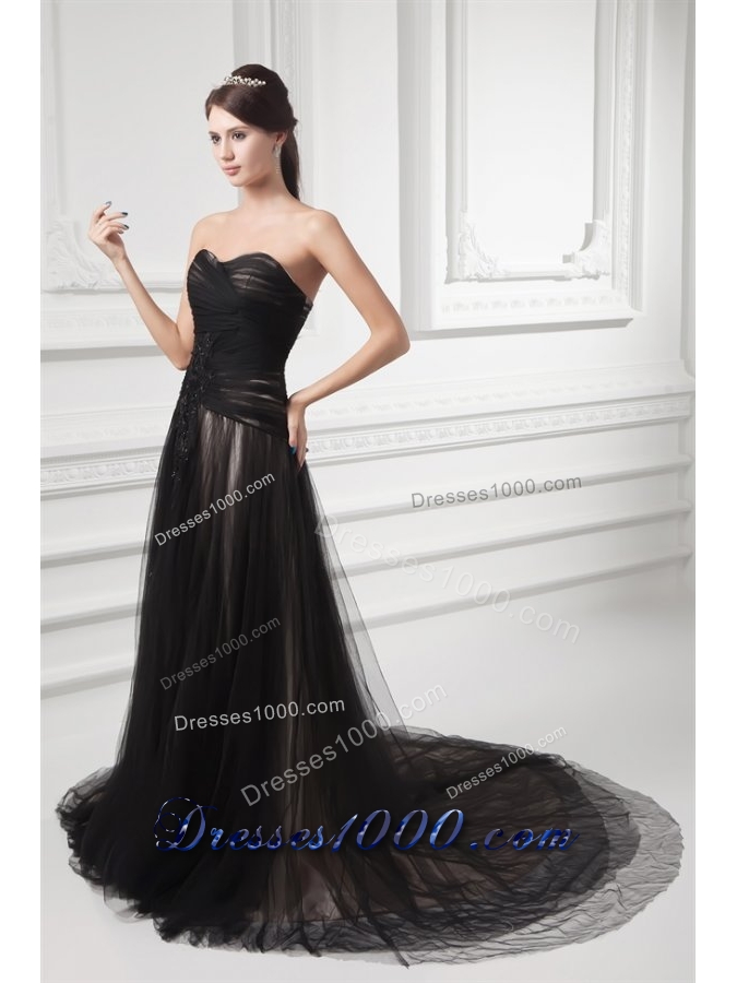 Graceful Formal Empire Sweetheart Black Tulle Ruching Prom Dress