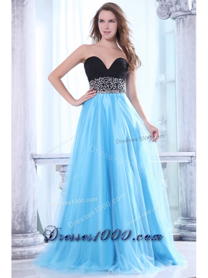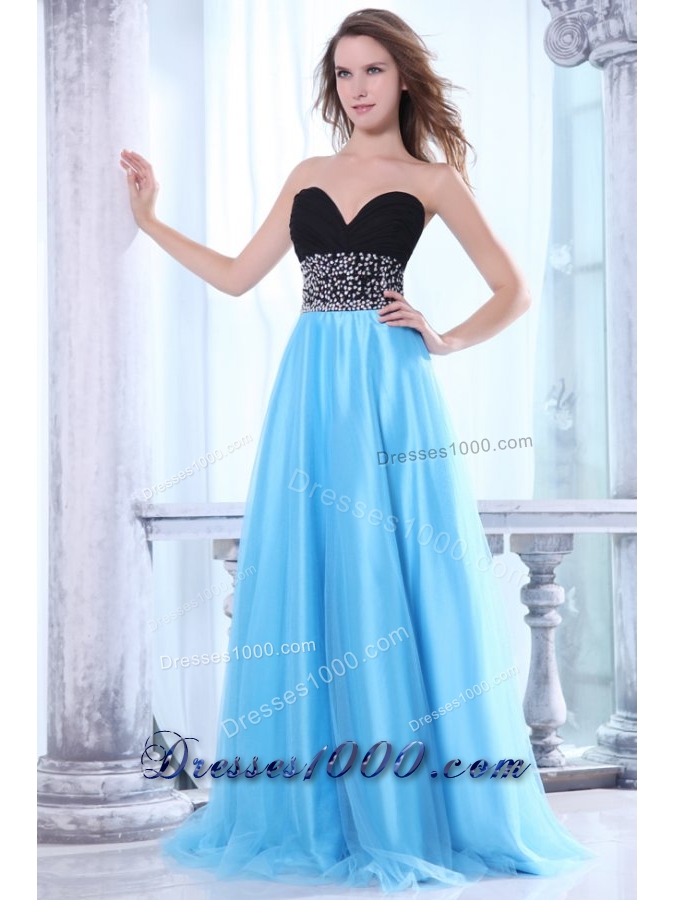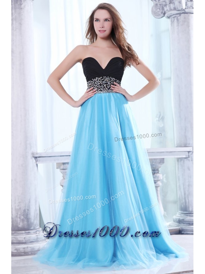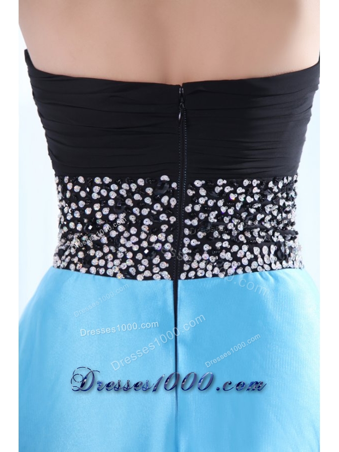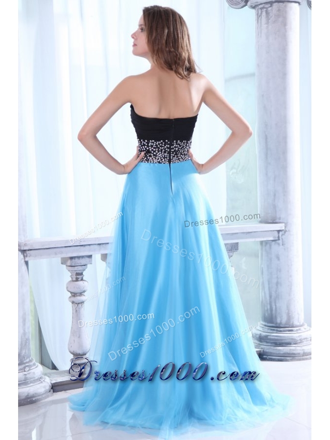 Black and Aqua Blue Prom Dress With Beading Decorated Waist