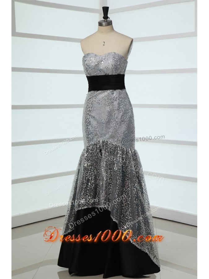 Most Beautiful Grey Mermaid Sweetheart Sequins Fitted Prom Dress