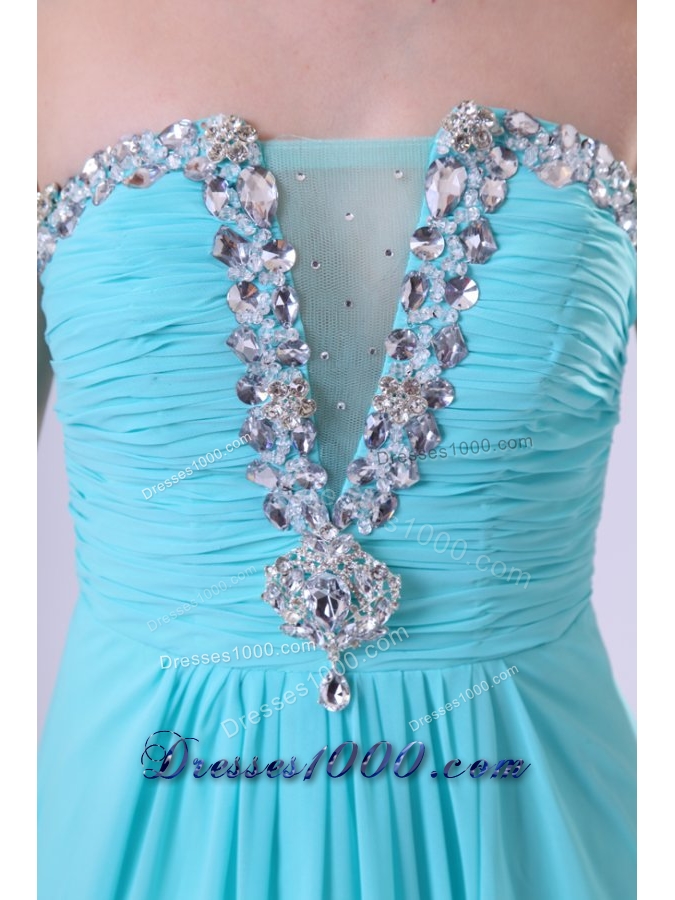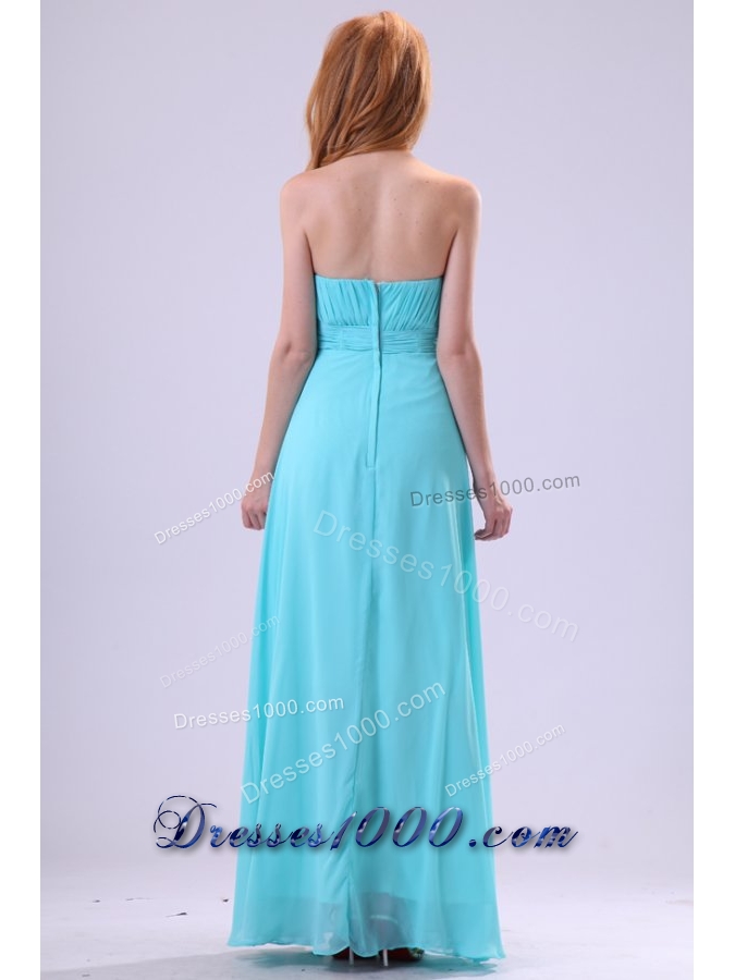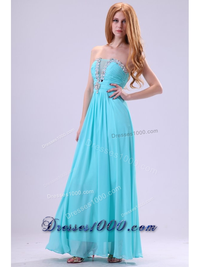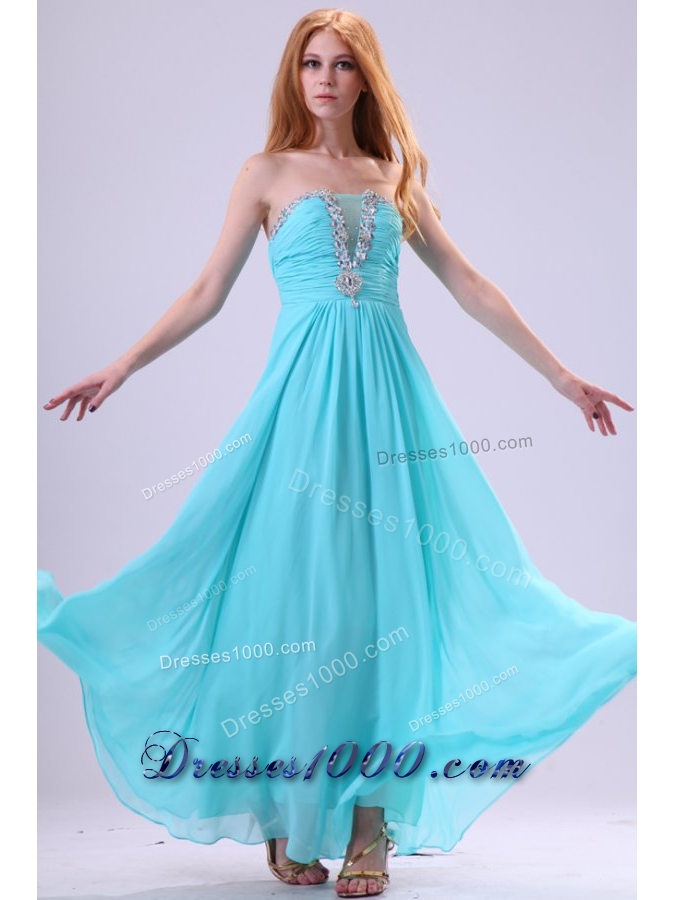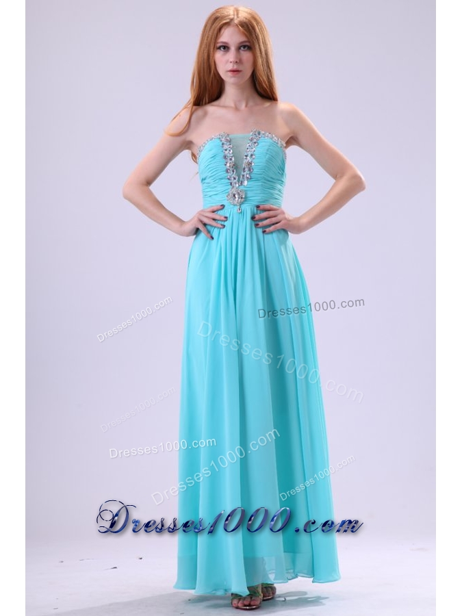 Aqua Blue Chiffon Strapless Empire Prom Dress with Beading