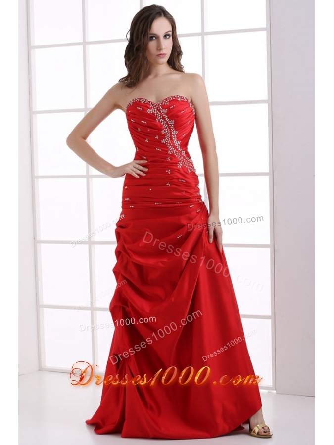 Red Sweetheart Beading and Pick-ups Ruching Prom Dress