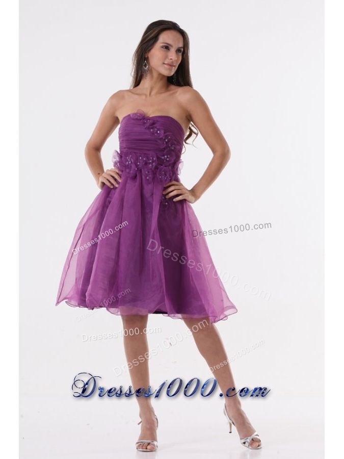 Lovely Purple Strapless Appliques Organza Knee-length Prom Dress