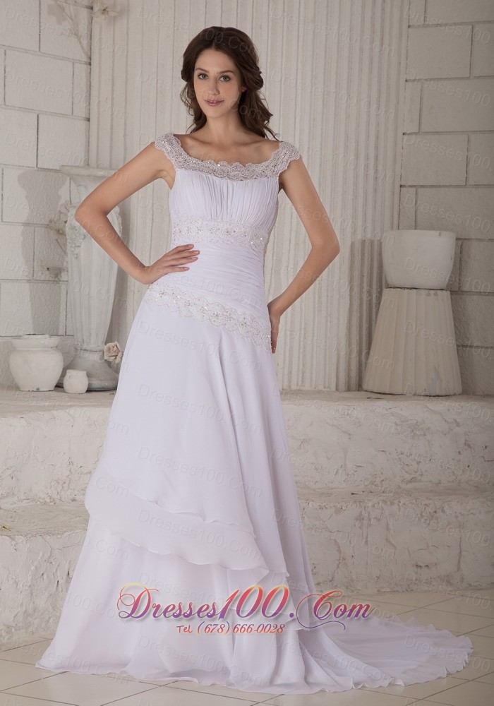 Embroidery Scoop Chiffon Wedding Dress Court Train