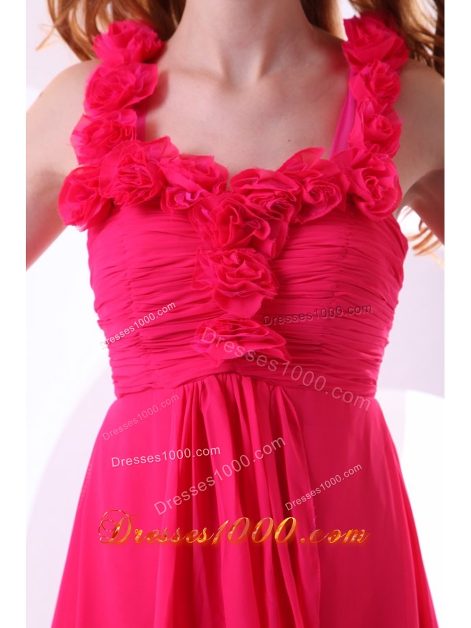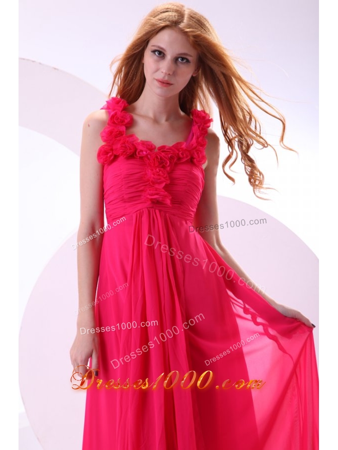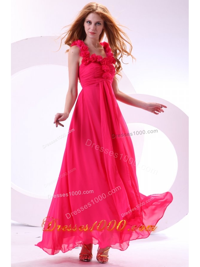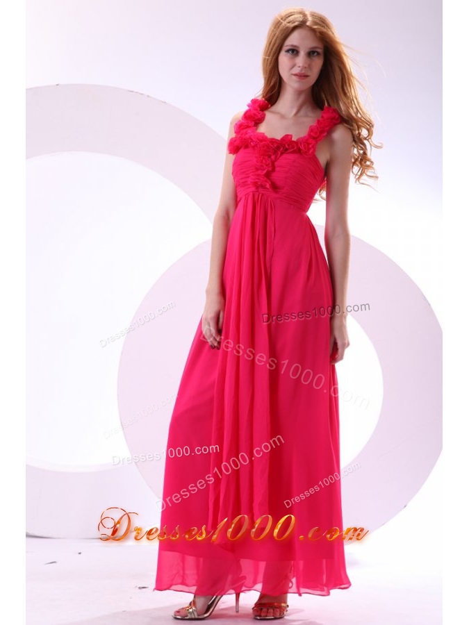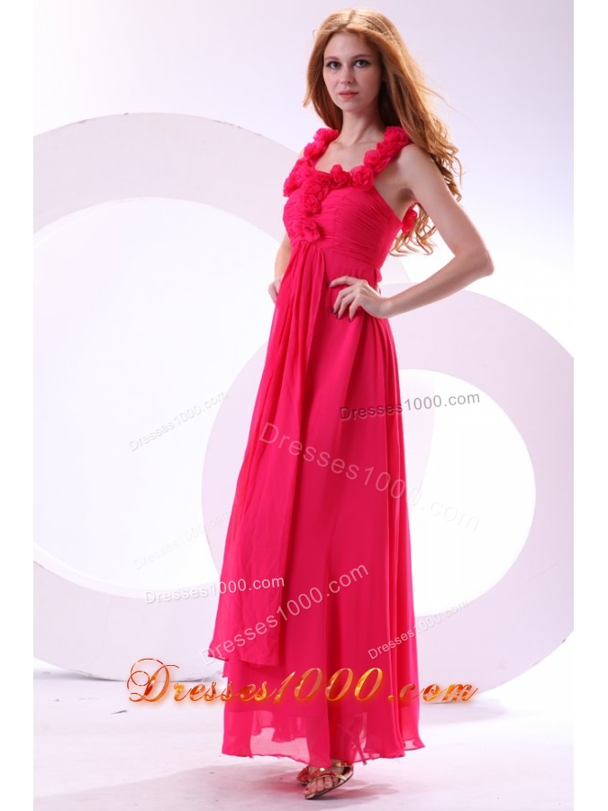 Hot Pink Empire Straps Ankle-length Ruching Chiffon Prom Dress