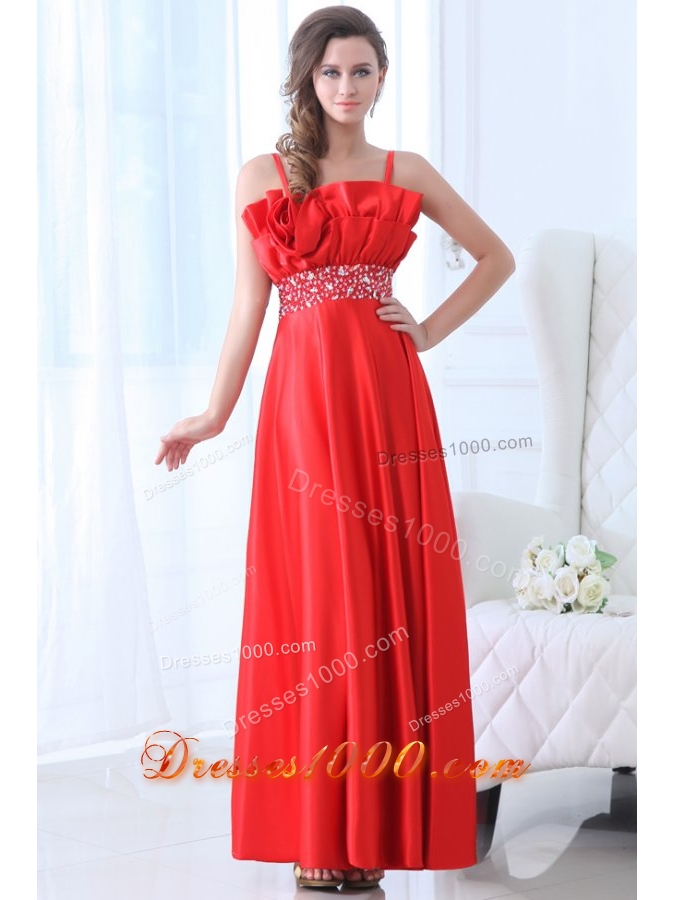 Unique Design Red Empire Beading Prom Evening Dress With Straps