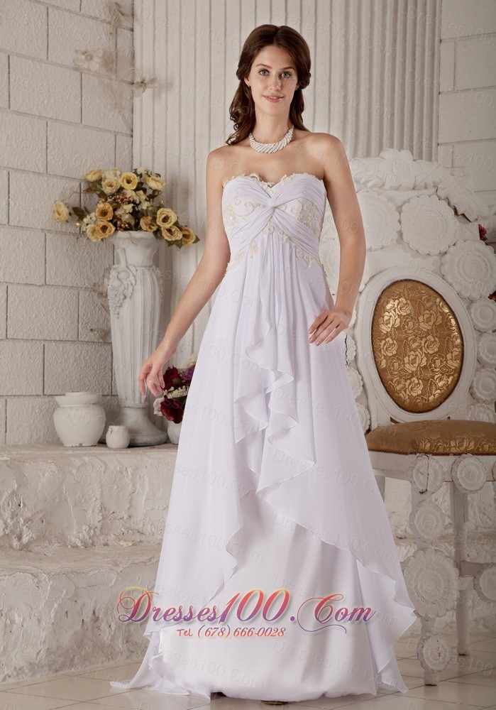 Sweetheart Appliques Chiffon Wedding Dress Brush Train