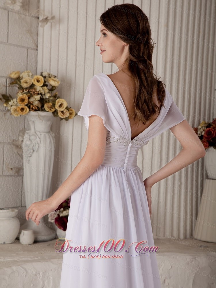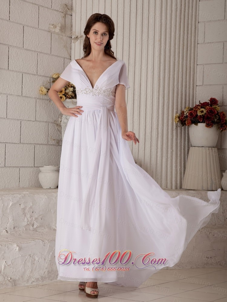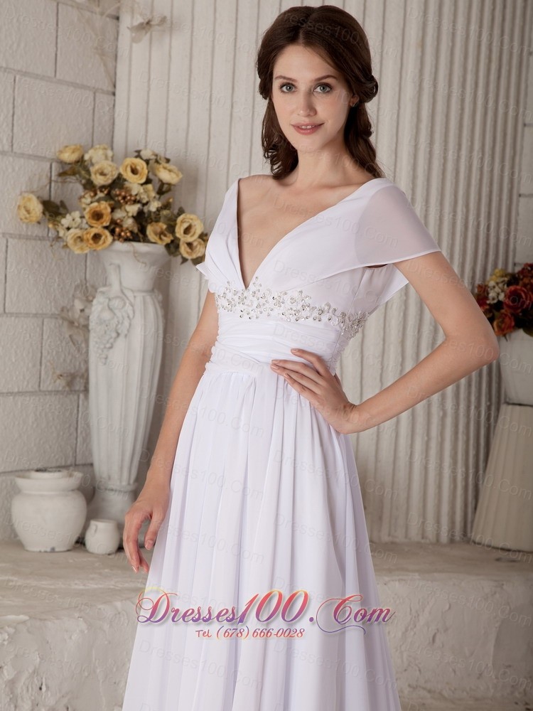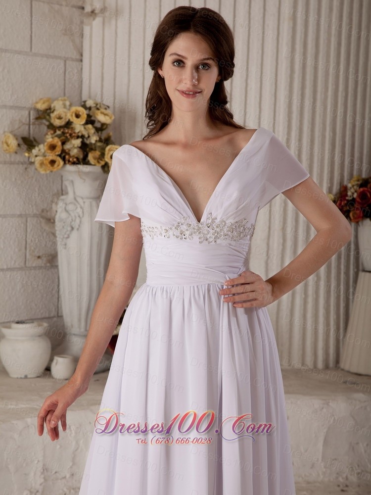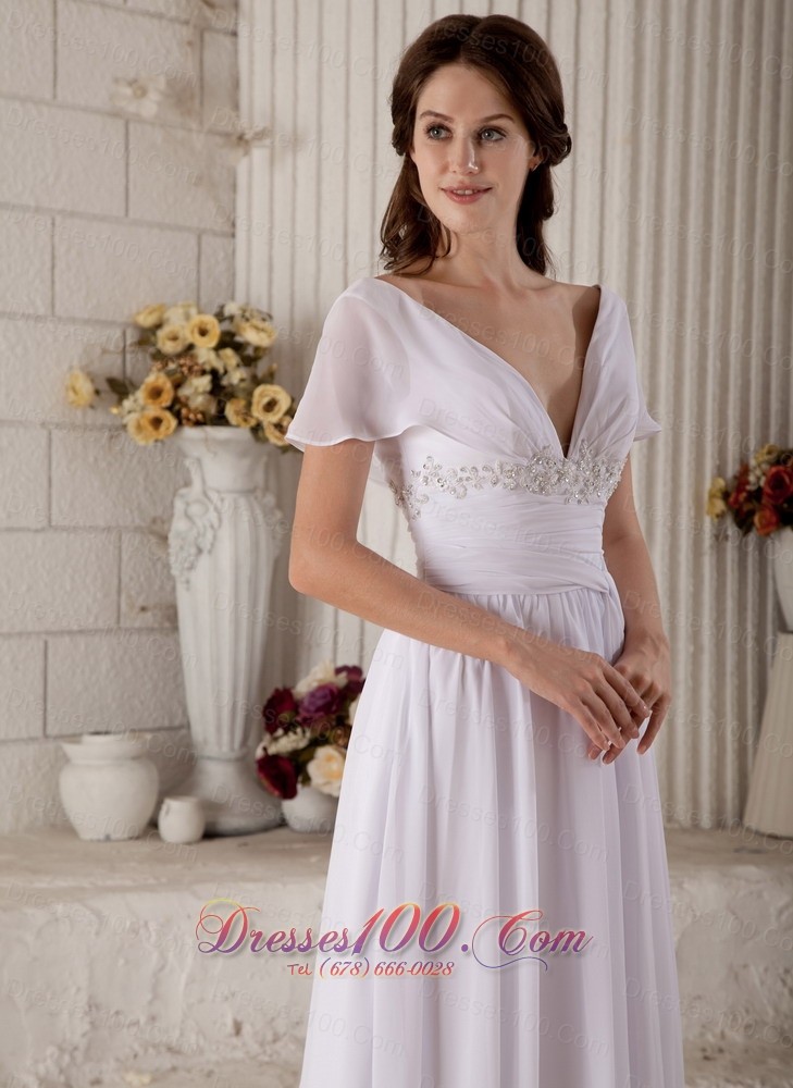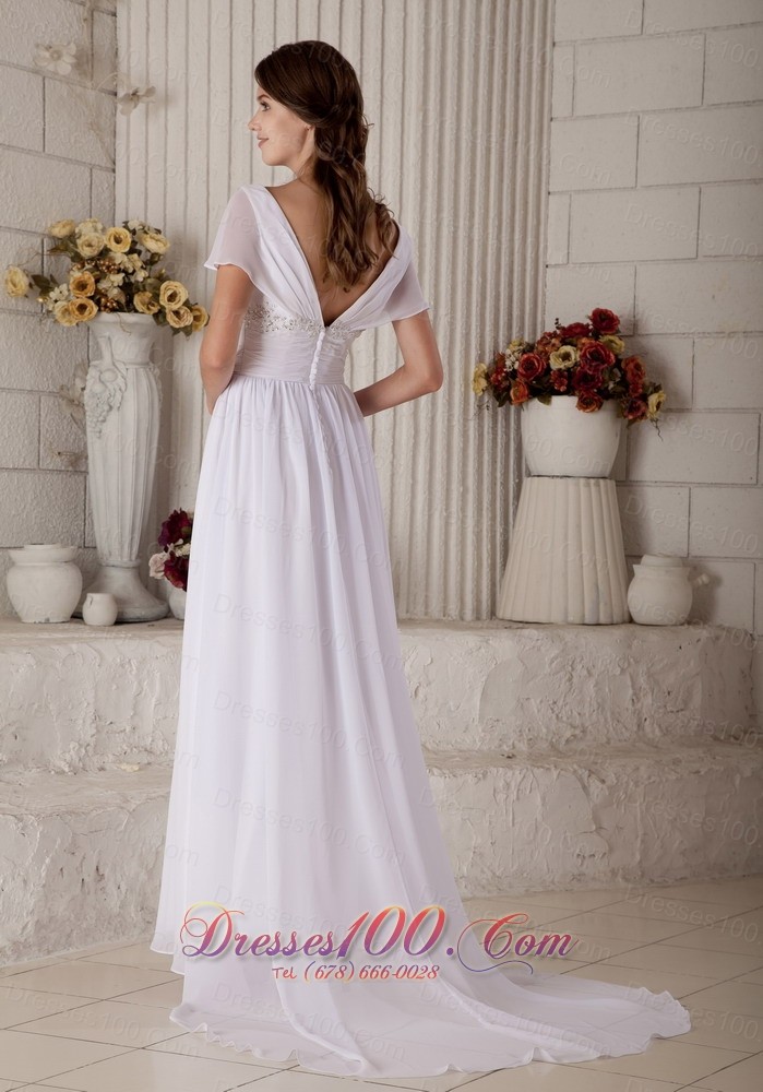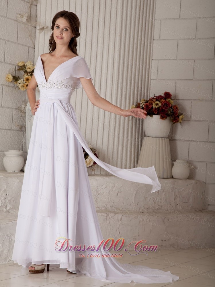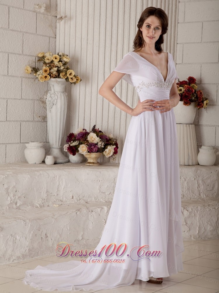 V Neck Beaded Chiffon Brush Beach Wedding Dress