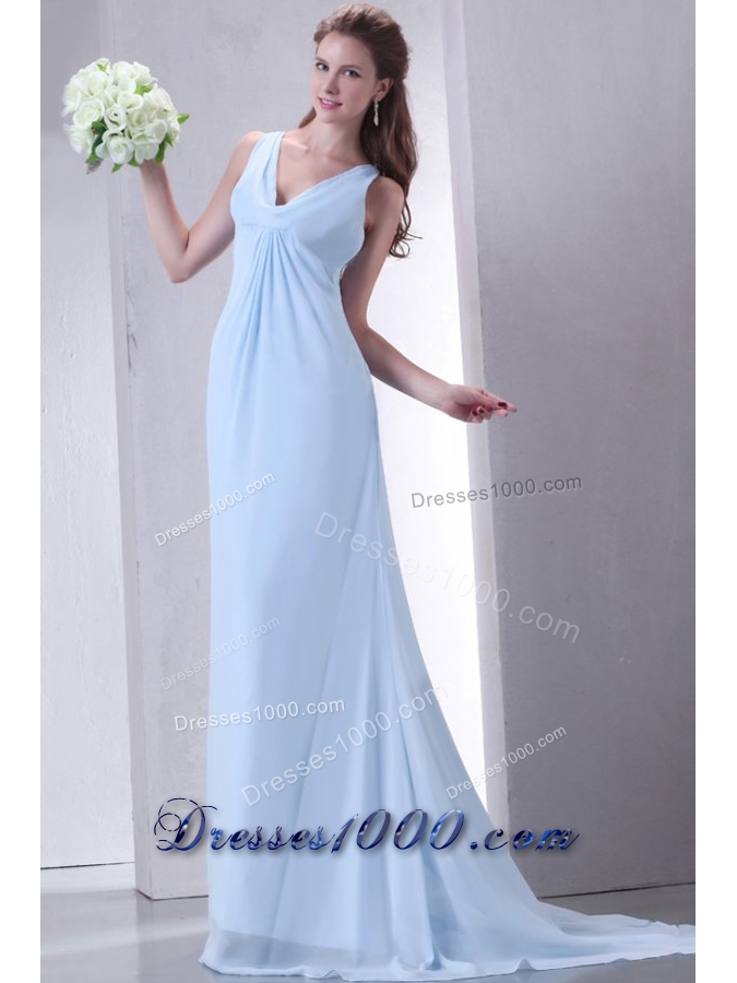 Discount Empire V-neck Light Blue Prom Dress with Ruching