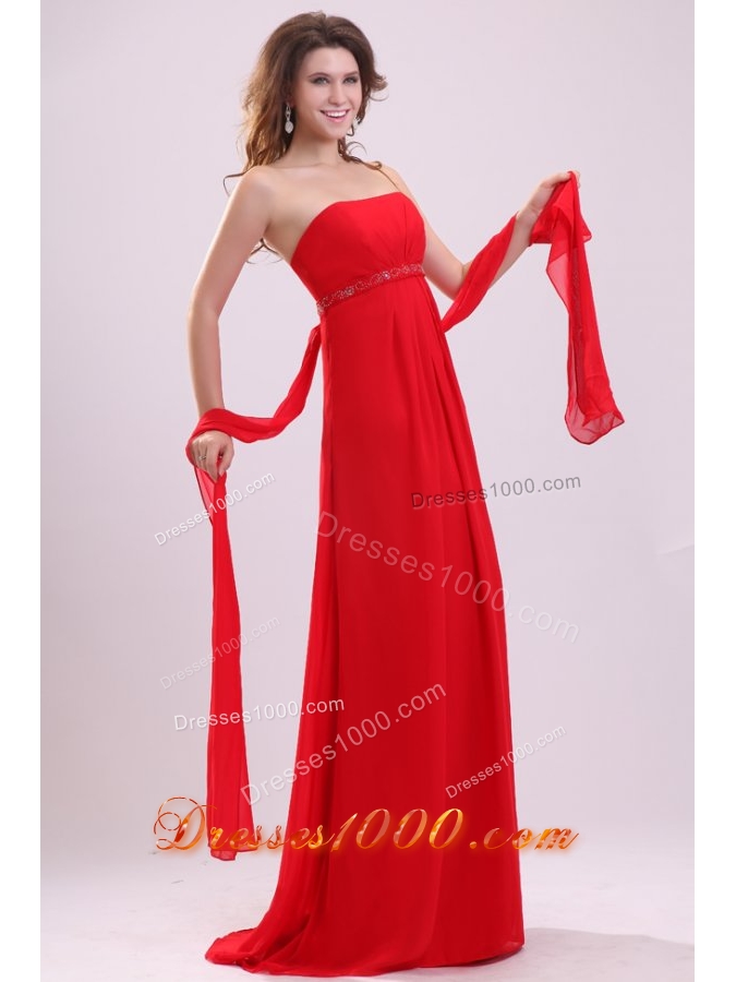 Eye Catching Red Strapless Beading and Ruching Chiffon Prom Dress
