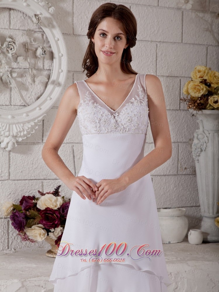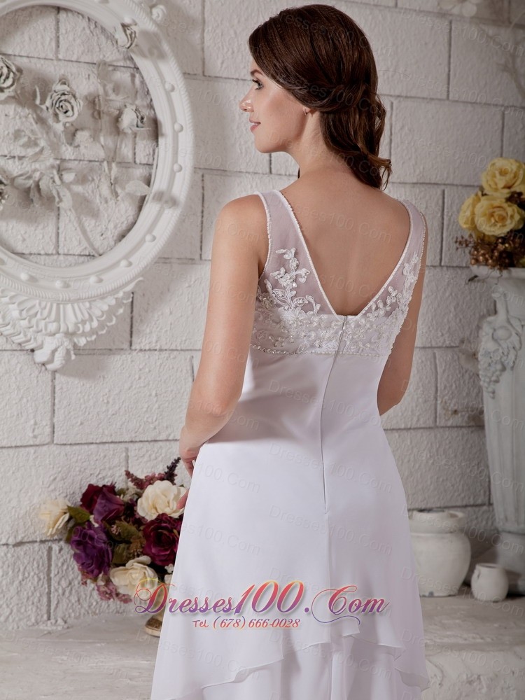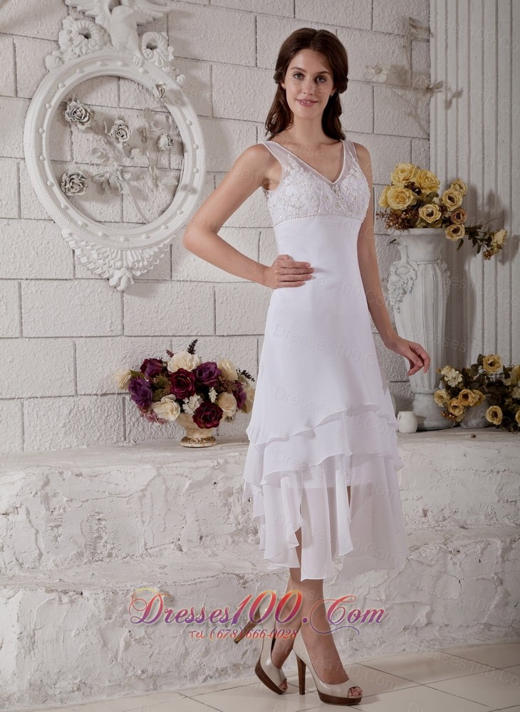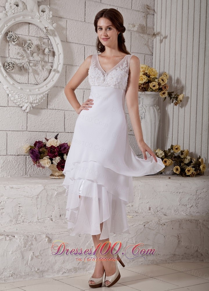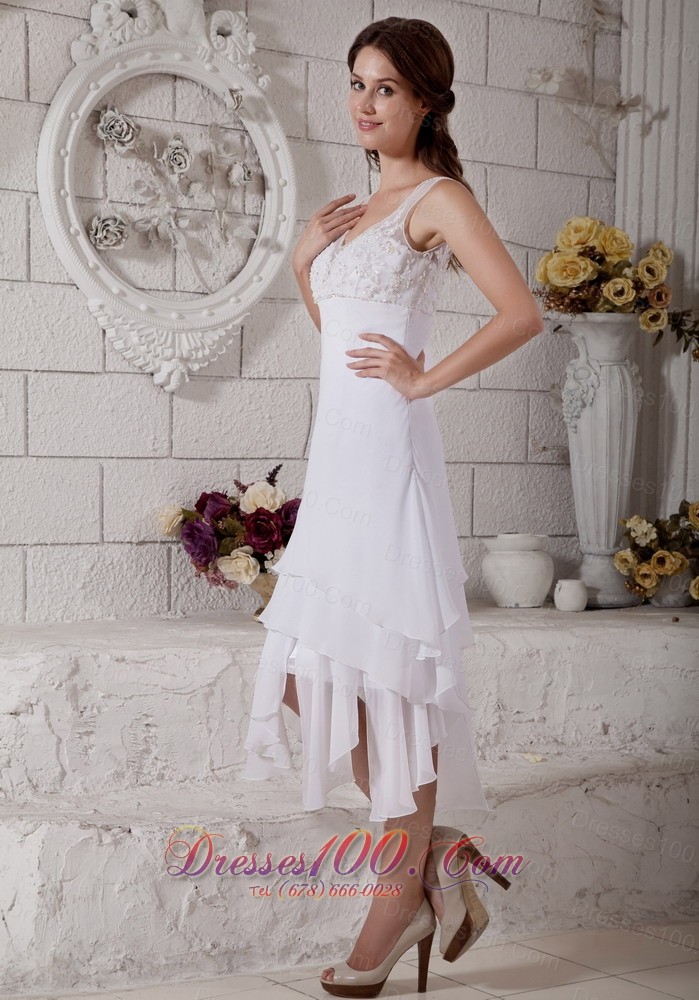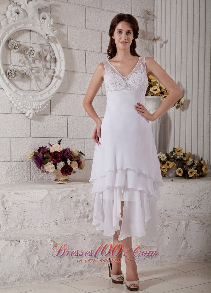 Embroidery V Neck Short Wedding Dress Bridal Chiffon