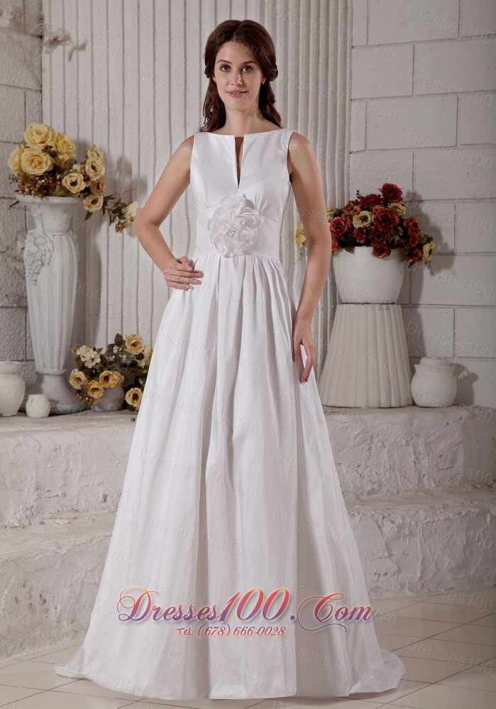 Taffeta Bateau Wedding Dress With Hand Made Flower