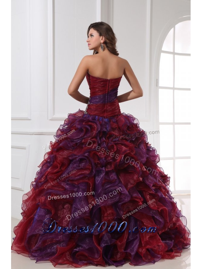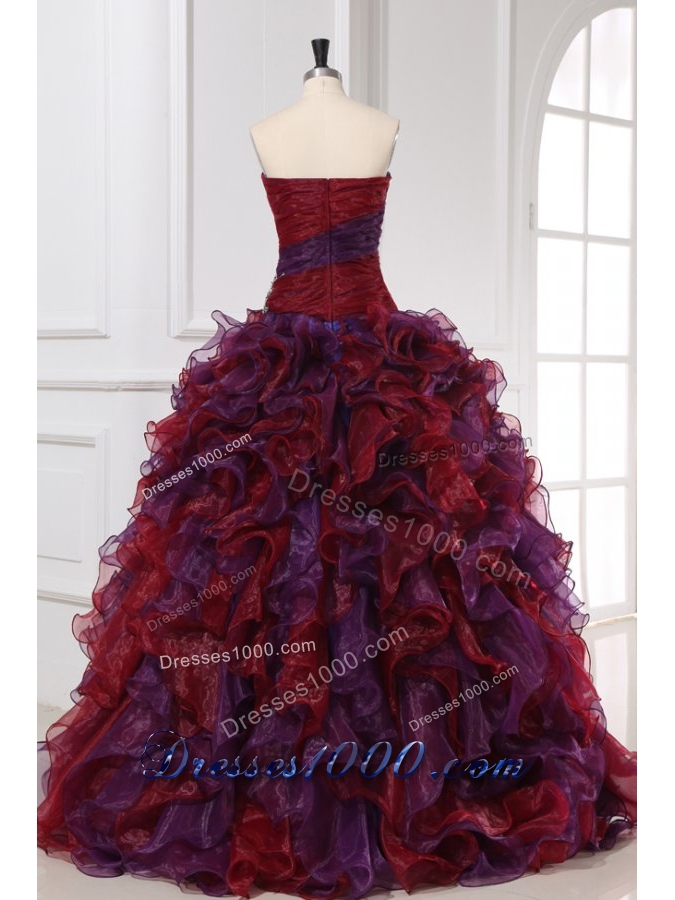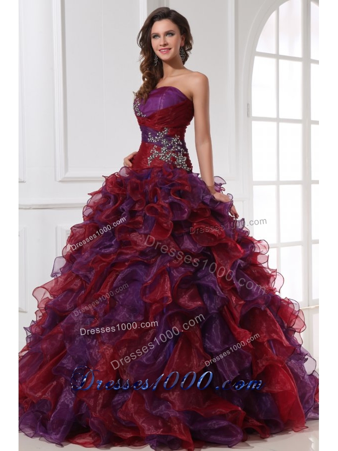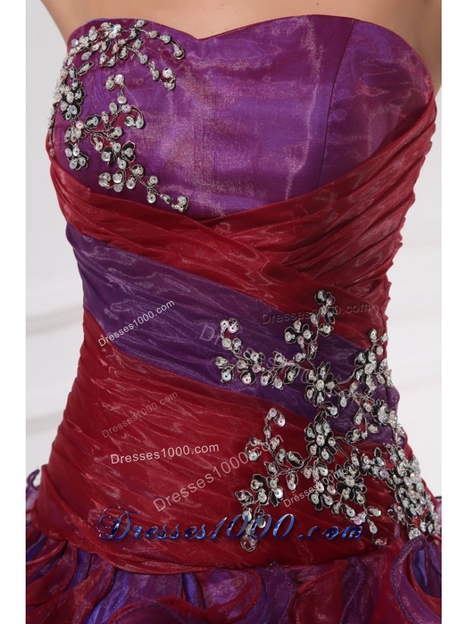 Multi-color Sweetheart Appliqued Sweet 16 Dresses with Ruffles