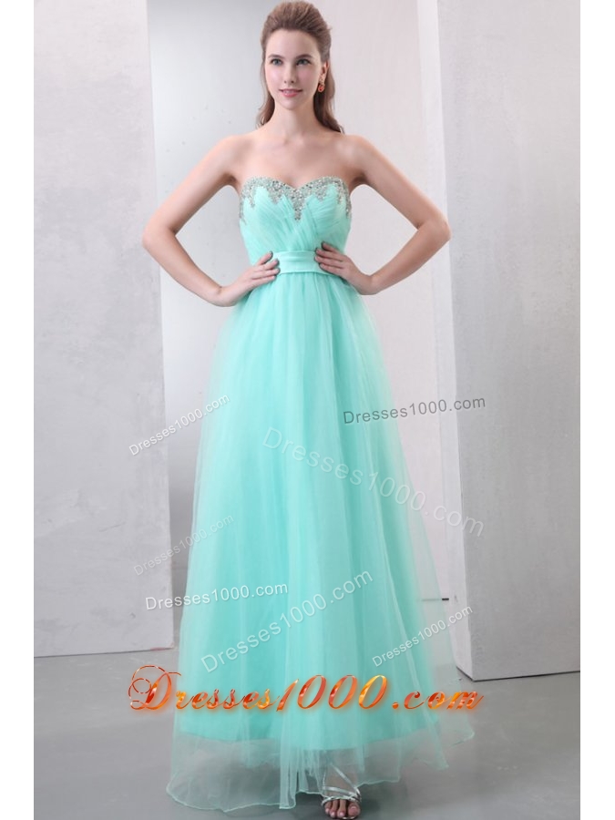 Mint Green Sweetheart Beaded Organza Prom Dress for Girls