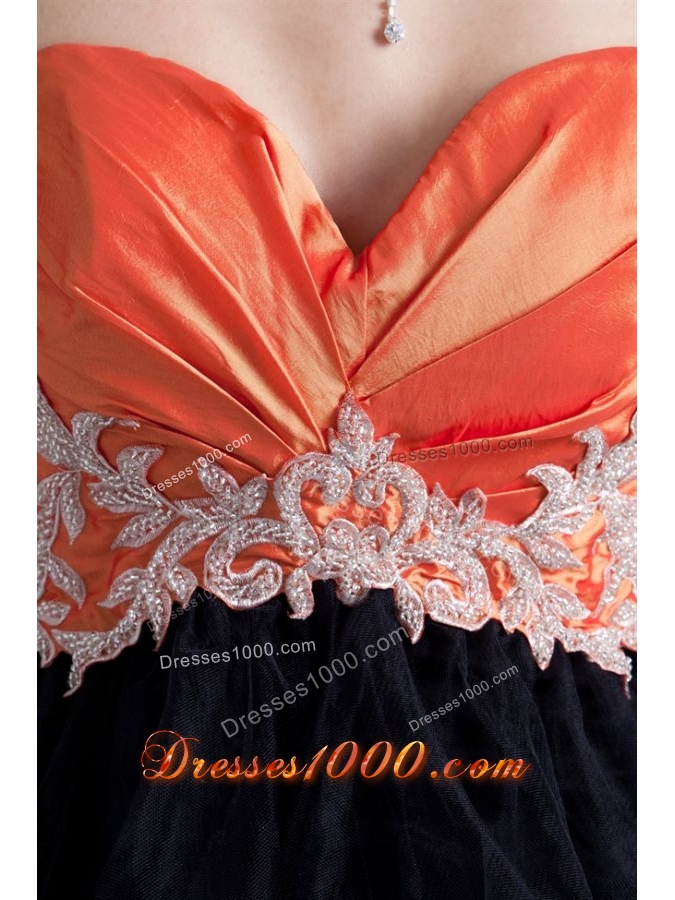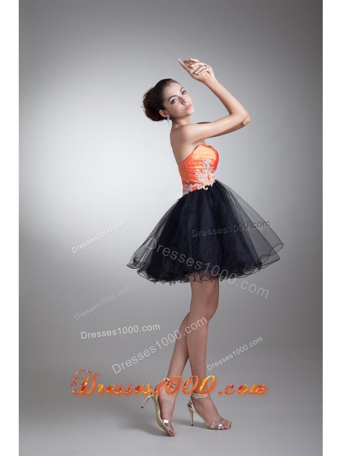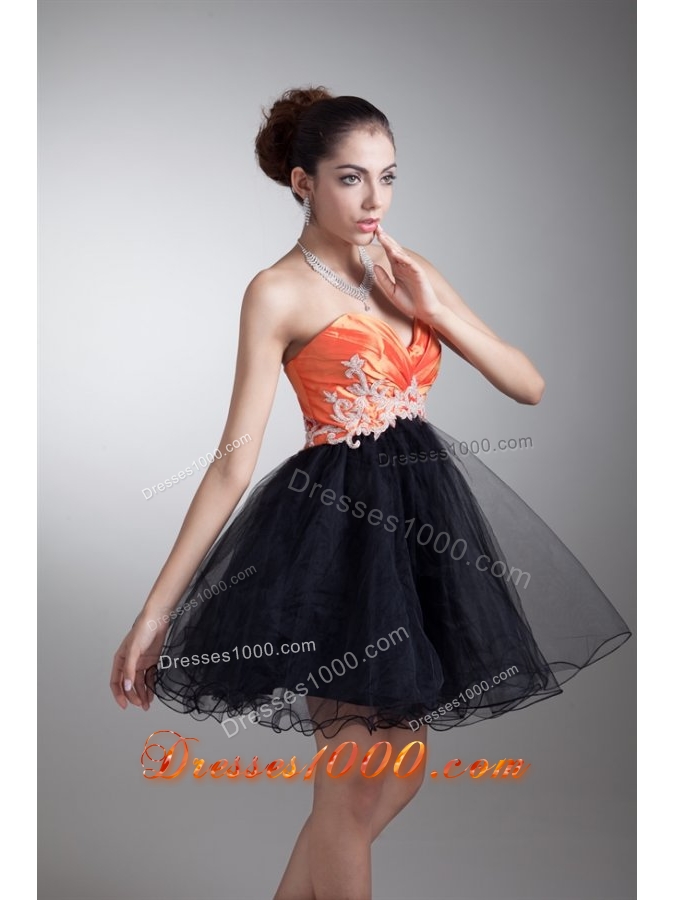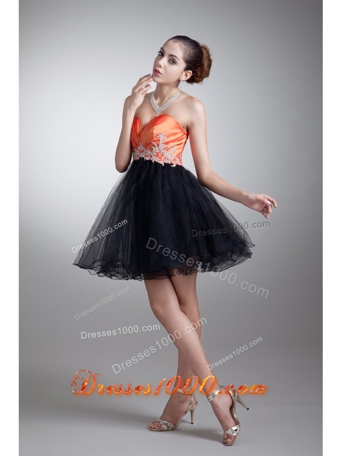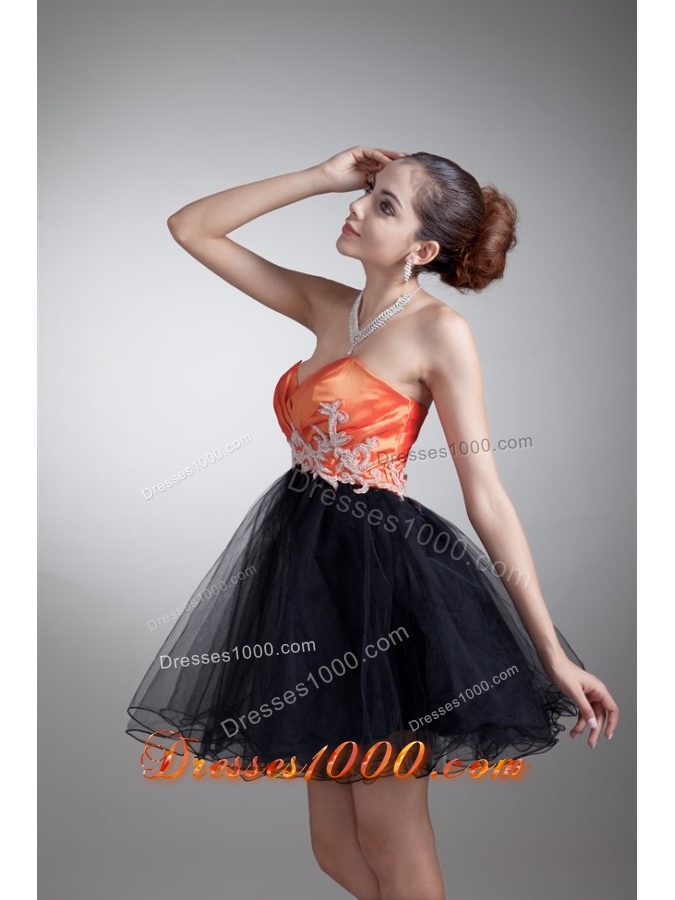 Cute Orange and Black Appliqued Sweetheart Mini-length Prom Dress