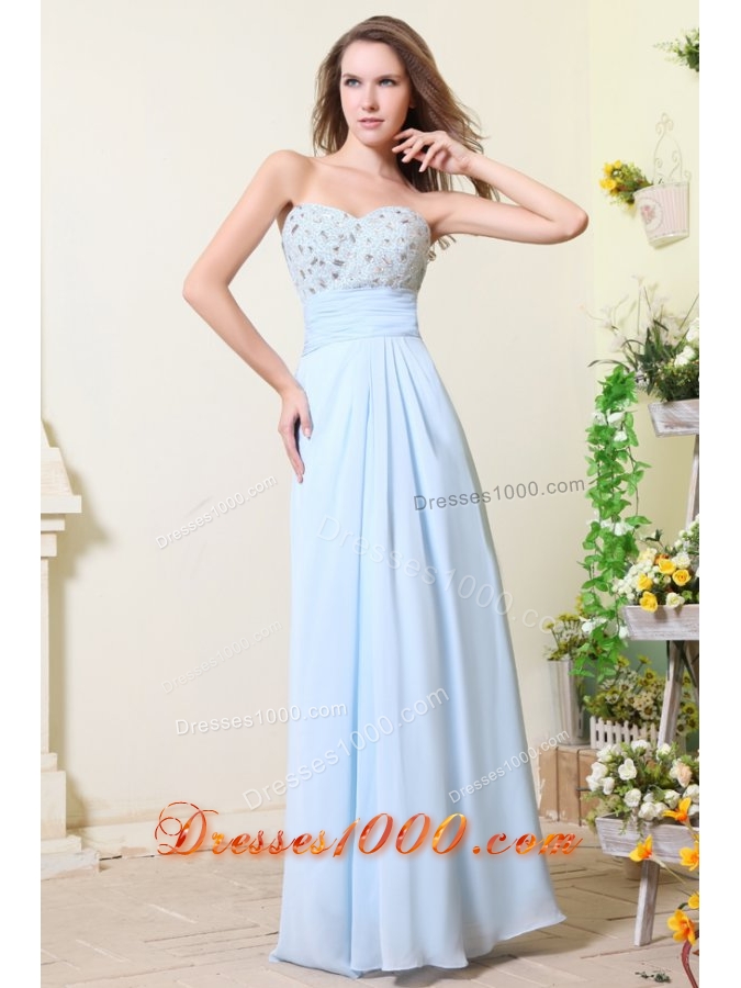Newest Baby Blue Empire Sweetheart Chiffon Prom Dress with Stones