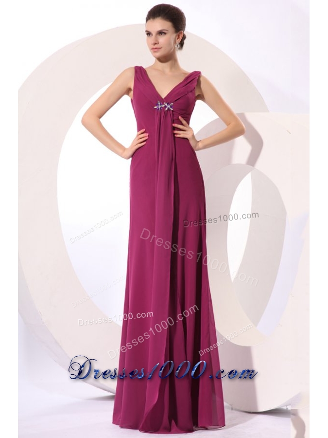 Empire V-neck Ruched Chiffon Prom Dress for Women with V Back