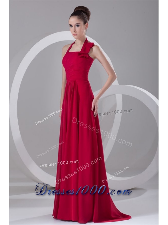 Discount Red Empire Halter Ruched Chiffon Prom Dress for Ladies