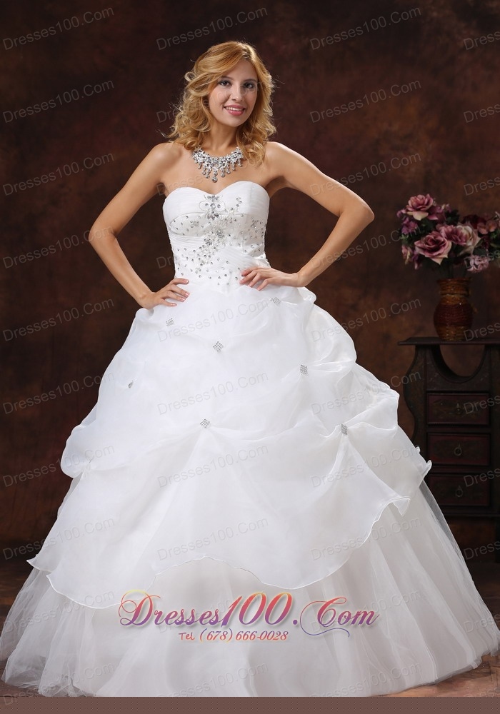 Sweetheart Pick-ups Beaded Bodice Ball Gown Wedding Dress