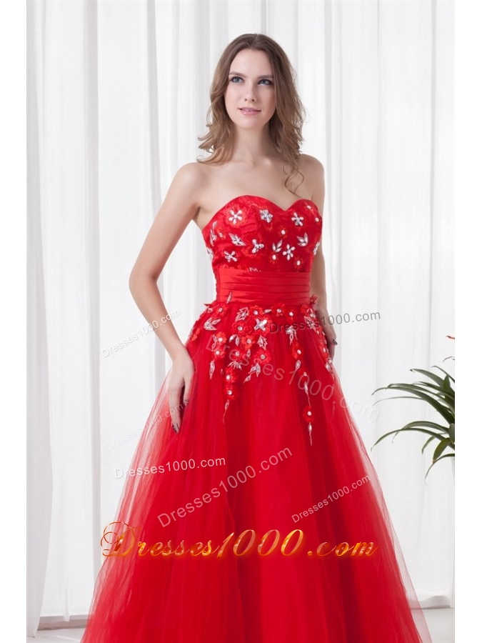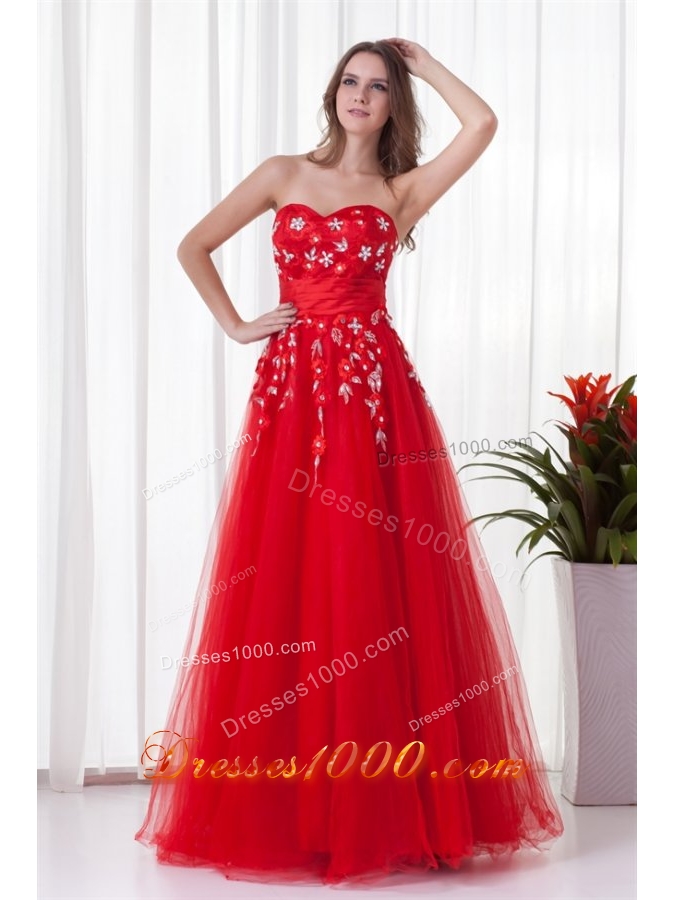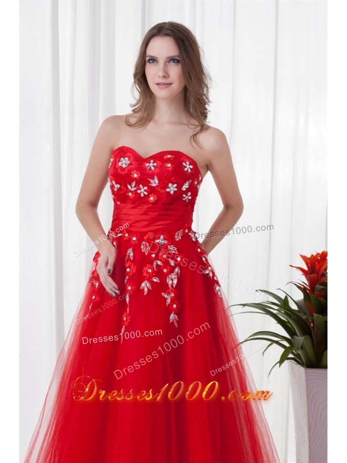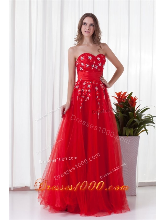 2014 Sweetheart Beaded Floor-length Red Prom Dress
