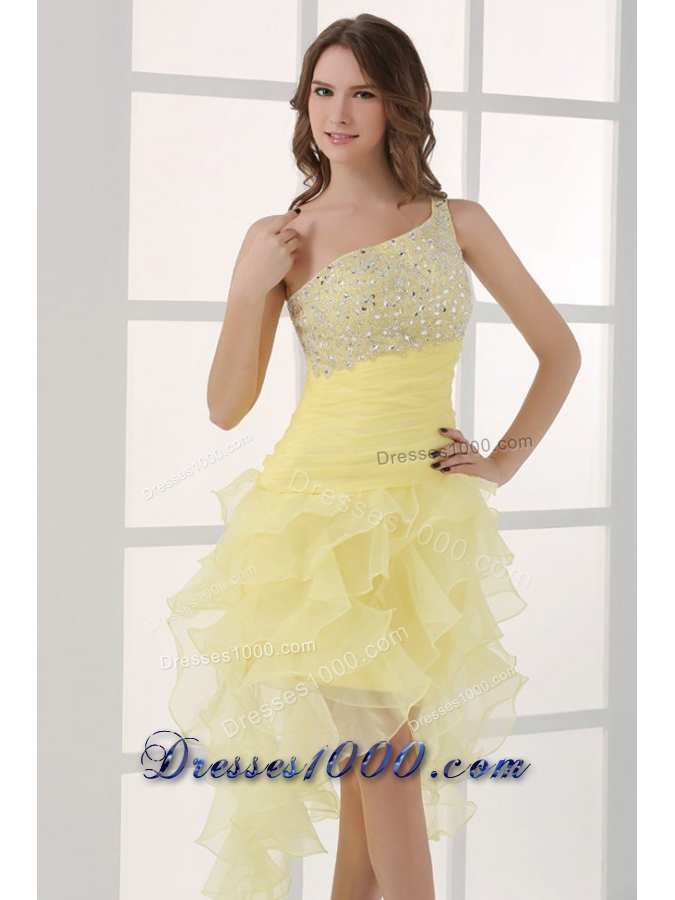 Asymmetrical Hem Light Yellow Prom Dress with One Shoulder Strap