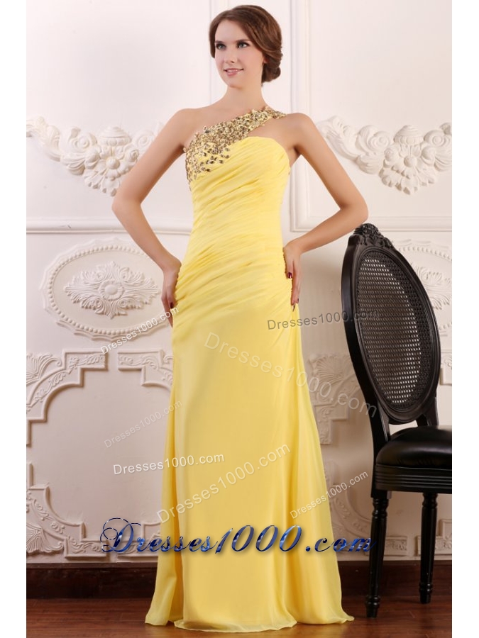 Paillettes One Shoulder Sheath Ruching Chiffon Prom Gown Dress