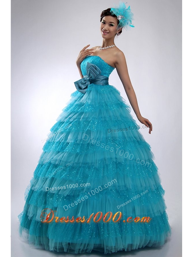 Lovely Bowknot and Paillettes Puffy Layers Tule Sweet 16 Dresses
