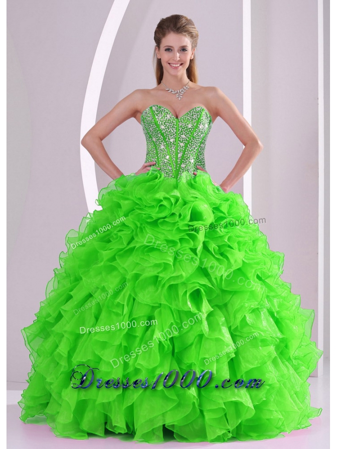 Spring Green Ball Gown Sweetheart Popular Quinceanera Gowns with Beading and Ruffles