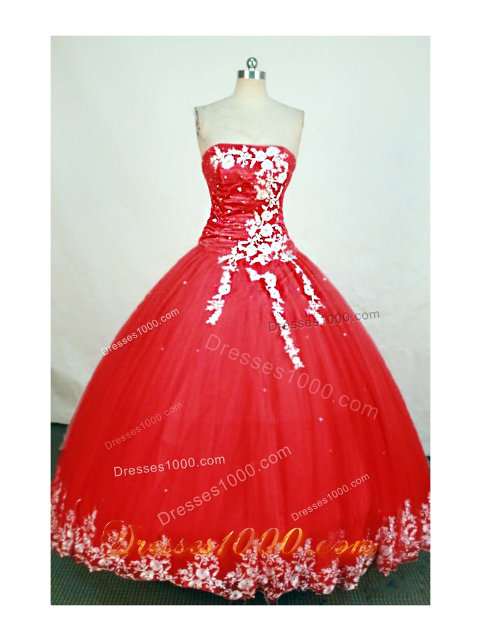 Gorgeous Ball Gown Strapless Floor-length Red Appliques Quinceanera dress