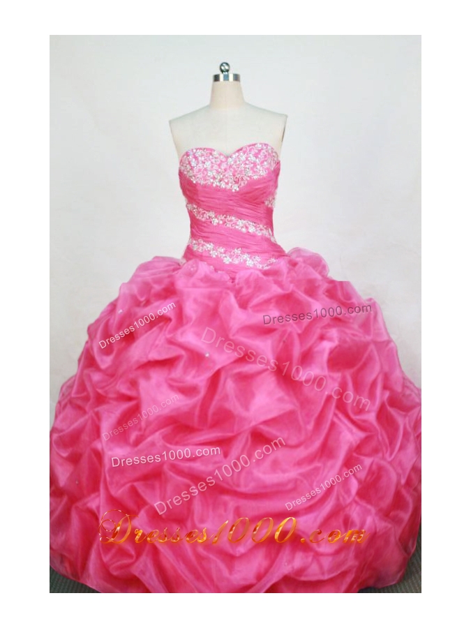 Romantic Ball Gown Sweetheart Floor-length Rose Pink Organza Beading Quinceanera dress